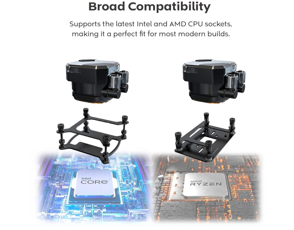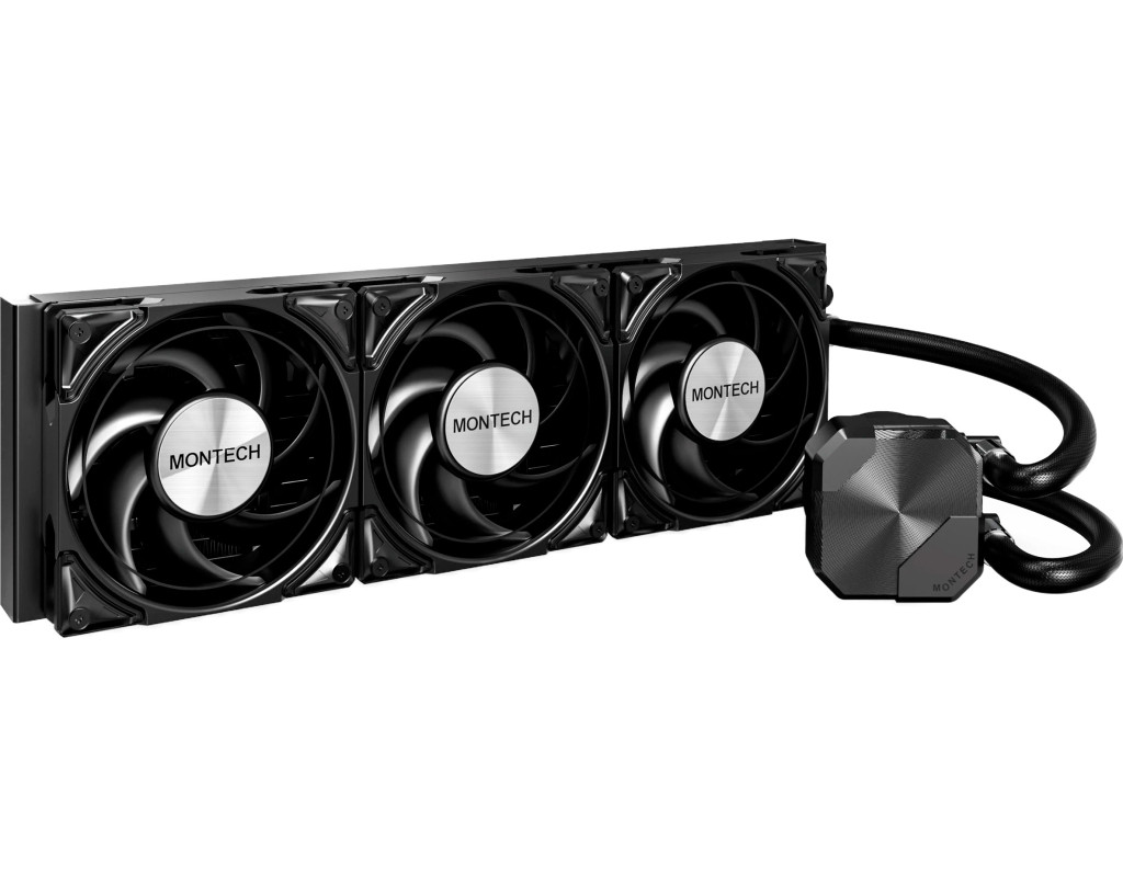 Система водяного охолодження Montech HyperFlow Silent 360 — це передове рішення для ефективного охолодження високопродуктивних процесорів у геймерських і професійних ПК-збірках. Завдяки 360-мм радіатору, трьом оптимізованим вентиляторам і помпі з низьким рівнем шуму, ця система забезпечує виняткову продуктивність із мінімальним акустичним дискомфортом. Сумісність із широким спектром сокетів і компактний дизайн роблять її універсальним вибором для сучасних систем, де важливі тиша, ефективність і надійність. Montech HyperFlow Silent 360 оснащена алюмінієвим радіатором із щільністю ребер 20 FPI, що забезпечує оптимальне розсіювання тепла. Система включає три 120-мм вентилятори Metal Pro 12 Silent із гідродинамічними підшипниками, які працюють на швидкості 800–2200 об/хв, створюючи повітряний потік до 72.3 CFM і статичний тиск до 3.12 мм H₂O при рівні шуму лише 24.8 дБ. Вентилятори підключені через 4-pin PWM, що дозволяє точно регулювати швидкість залежно від температури. Помпа зі швидкістю до 3100 об/хв має мідну основу для ефективного теплопередавання та керамічну вісь для довговічності. Система підтримує широкий спектр сокетів від Intel і AMD, що робить її сумісною з більшістю сучасних і попередніх платформ. Гнучкі трубки довжиною 400 мм із тефлоновим покриттям забезпечують зручне розміщення в корпусах ATX і Micro-ATX. Відсутність ARGB-підсвічування в моделі Silent акцентує на тиші та продуктивності, що ідеально для користувачів, які віддають перевагу мінімалістичному дизайну. Особливості Montech HyperFlow Silent 360: - 360-мм радіатор із трьома 120-мм вентиляторами Metal Pro Silent. |