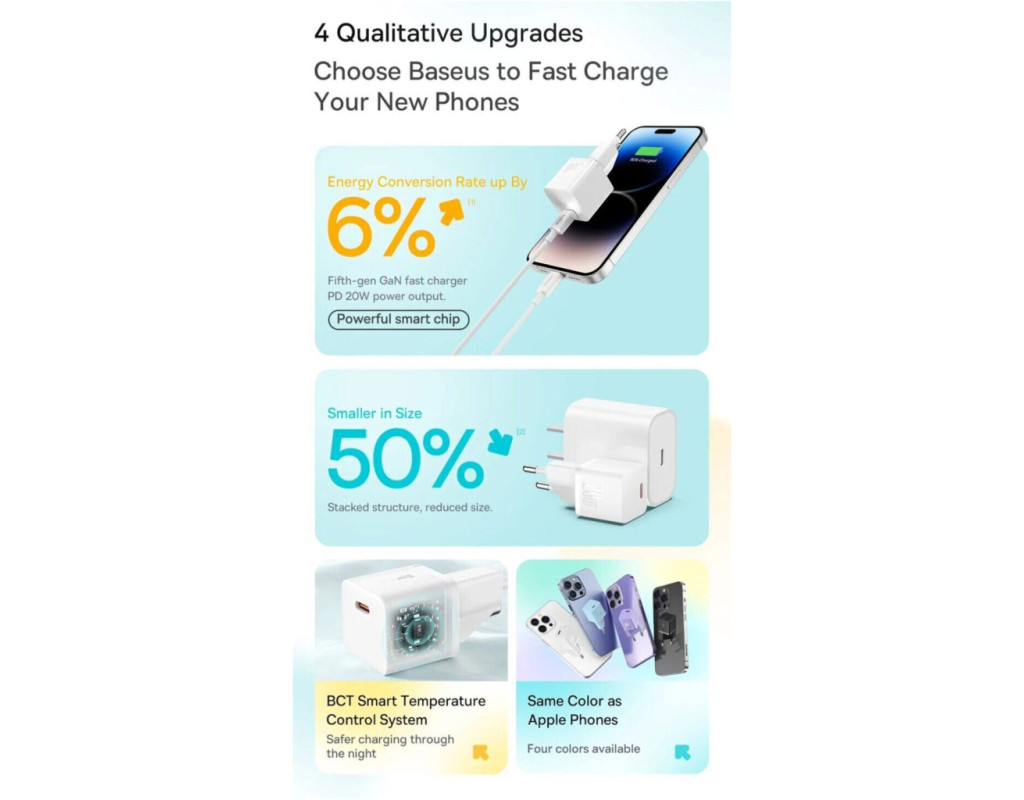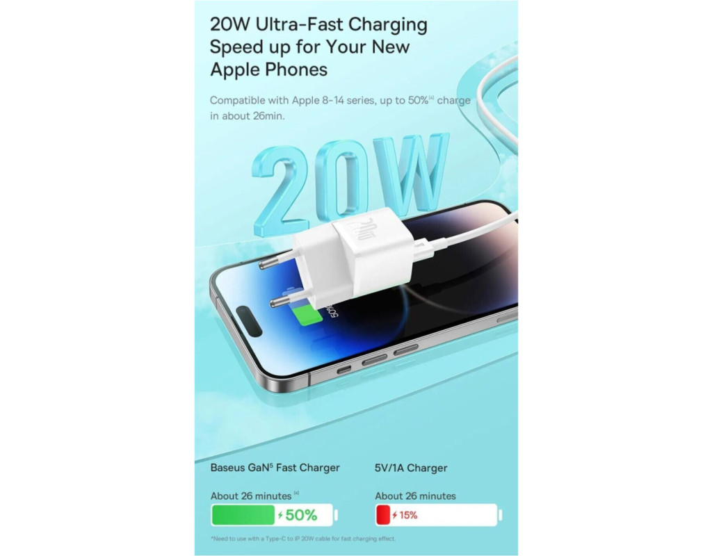| Зарядний пристрій Baseus GaN5 Fast Charger USB-C 20W white (CCGN050102) пропонує високотехнологічний підхід до зарядки ваших пристроїв. Використовуючи інноваційну технологію GaN5, цей адаптер забезпечує високу ефективність і компактність завдяки нітриду галію, що є новим типом напівпровідника. Це дозволяє зменшити кількість компонентів, зберігаючи зручний розмір та легкість пристрою. З потужністю 20 Вт і підтримкою швидкісних стандартів зарядки, таких як Power Delivery 3.0 і Quick Charge 3.0, Baseus GaN5 гарантує блискавичне заряджання для всіх ваших гаджетів, включаючи телефони, планшети, навушники TWS і навіть смарт-годинники. Зарядний пристрій розрахований на роботу при напрузі 100-240 В та частоті 50-60 Гц, що робить його ідеальним помічником для подорожей по всьому світу. Компактний корпус даного адаптера виготовлений з вогнетривкого полімеру, що забезпечує його міцність і надійність, а також термостійкість, підтримуючи стабільну робочу температуру. Інноваційна технологія BCT сприяє розсіюванню тепла, що робить цей пристрій безпечним в експлуатації. Ергономічність і зручність використання цього зарядного пристрою освіжається за рахунок компактного розміру, легкості (вага усього 37 г) та універсальності одного USB Type-C виходу, який підтримує широке коло зарядних кабелів. Вбудована інтелектуальна система керування оптимізує зарядний процес, захищає від перезарядження та перегріву, що робить цей зарядний пристрій надійним рішенням для щоденного використання. Сумісність із сучасними протоколами прискорення зарядки гарантує, що ваші пристрої завжди будуть на ходу. |