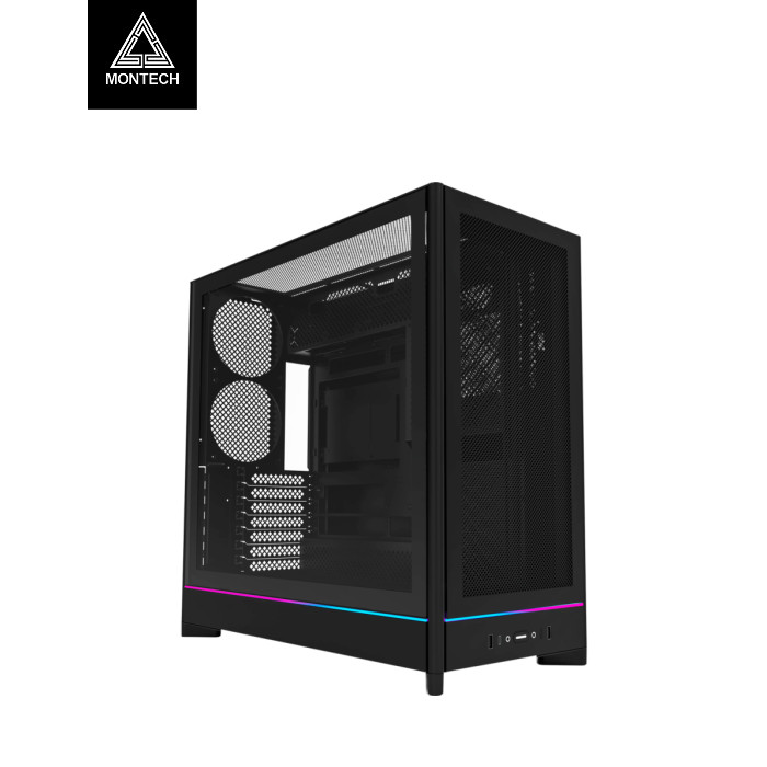 Корпус, що поєднує з вашими прагненнями MONTECH HS01 створений для реалізації високопродуктивних збірок. Продумане охолодження, стильний дизайн і гнучка конфігурація — все, що потрібно для вашого ідеального ПК. Створіть свій ПК – продемонструйте стиль Завдяки реверсивній конструкції бокова скляна панель може розташовуватись зліва або справа — щоб ваша збірка завжди була в центрі уваги. Єдина конструкція, надійна підтримка Інтегрована передня панель разом із регульованою рамкою вентилятора формують жорстку конструкцію, що гарантує міцність і добру вентиляцію. Охолодження за принципом димоходу Повітря природно рухається знизу вгору, ефективно виводячи тепло. Два задні вентилятори додатково підсилюють розсіювання тепла. Новий рівень повітряного потоку HS01 забезпечує на 10% кращу ефективність охолодження порівняно з традиційними корпусами, майже досягаючи показників відкритих рам. Гнучка підтримка систем охолодження Зовнішнє встановлення компонентів та оновлене розміщення вентиляторів дозволяють більше простору всередині корпусу та підтримку широкого спектра СВО і кулерів. Яскрава ARGB-підсвітка та зручні порти 29 режимів ARGB-підсвітки, порти USB Type-C, два USB Type-A, аудіо та мікрофонні роз'єми — все для сучасної взаємодії. Підтримка back-connect материнських плат Сумісність зі стандартними та зворотними материнськими платами, зокрема MSI Project Zero, ASUS BTF та іншими. PRO-версія – максимум з коробки MONTECH HS01 PRO постачається з 5 попередньо встановленими вентиляторами GF120 V2 ARGB, що підтримують синхронізацію з підсвіткою материнської плати. |
