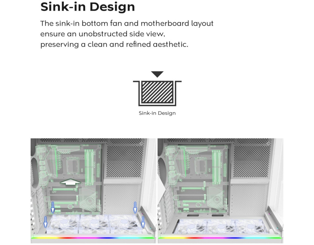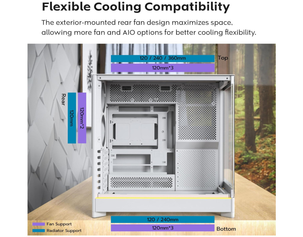 | Корпус для ПК MONTECH HS01 PRO (W) пропонує поєднання вишуканого дизайну та високої функціональності, що робить його оптимальним рішенням для будь-якого шанувальника ПК технологій. Стильний білий колір у поєднанні з чистими лініями надають йому сучасного вигляду, додаючи елегантності вашій робочій станції. За цим естетичним екстер’єром ховаються безліч можливостей налаштування, які підходять під будь-які індивідуальні потреби. Цей геймерський корпус класу Miditower дозволяє встановлювати материнські плати різних форм-факторів, включаючи Mini-ITX, ATX та Micro-ATX, що забезпечує гнучкість у виборі апаратної платформи. Це означає, що ви можете розмістити найпотужніші компоненти без обмежень: довжина для встановлення відеокарт досягає 420 мм, що дозволяє без труднощів використовувати найсучасніші моделі. Додаткова висота для процесорних кулерів - до 175 мм - оптимізує охолодження процесора в найвибагливіших умовах. Модель MONTECH HS01 PRO (W) особлива своєю ефективною системою охолодження. З п'ятьма попередньо встановленими вентиляторами розміром 120 мм та можливістю установки додаткових вентиляторів на дні, вирішити проблему перегріву абсолютно легко. Підтримка рідинного охолодження розширює можливості вашої системи: кріплення для радіаторів передбачено на задній (120 мм), верхній (до 360 мм) та нижній (до 240 мм) панелях. Це дозволяє зберігати оптимальну температуру навіть при інтенсивних іграх або професійних комп'ютерних обрахунках. Інтер'єр корпусу продуманий до дрібниць для зручності та функціональності. При розмірах 240 x 480 x 480 мм, корпус пропонує продуманий кабель-менеджмент, який не тільки зберігає простір, але й забезпечує відмінну циркуляцію повітря, покращуючи загальну ефективність охолодження системи. Дуже зручним є розміщення внутрішніх відсіків: доступно два відсіки для накопичувачів 3.5" та чотири для 2.5", що дозволяє зберігати великі обсяги даних і налаштовувати конфігурацію з високою гнучкістю. Для підтримки максимальної зручності користувача, корпус обладнано сучасними зовнішніми роз'ємами, серед яких 1 x USB Type C, 2 x USB 3.0 та два аудіо-роз'єми. Це дозволяє без додаткових зусиль підключати периферійні пристрої та отримувати доступ до важливих функцій. Монтаж довгих відеокарт значно спрощується завдяки ретельно продуманій конструкції корпусу. Передбачене верхнє розташування блоку живлення допускає установку пристроїв довжиною до 200 мм, що підвищує загальну збалансованість системи та полегшує процес складання. Ще однією значною перевагою є стильне LED підсвічування, яке надає корпусу не лише сучасного вигляду, але й дозволяє переглядати внутрішні компоненти через прозоре бічне вікно. Це особливо привабливо як для геймерів, так і для професійних користувачів, які прагнуть поєднати ефективність з естетикою. З вагою в 10 кг, MONTECH HS01 PRO (W) вирізняється надійністю та міцністю. Він створений для тривалого використання, відзначаючись стабільністю та стійкістю навіть у найскладніших умовах. Застосування high-tech матеріалів разом із передовими конструктивними рішеннями забезпечує актуальність та готовність корпусу до майбутніх викликів світу ПК. |