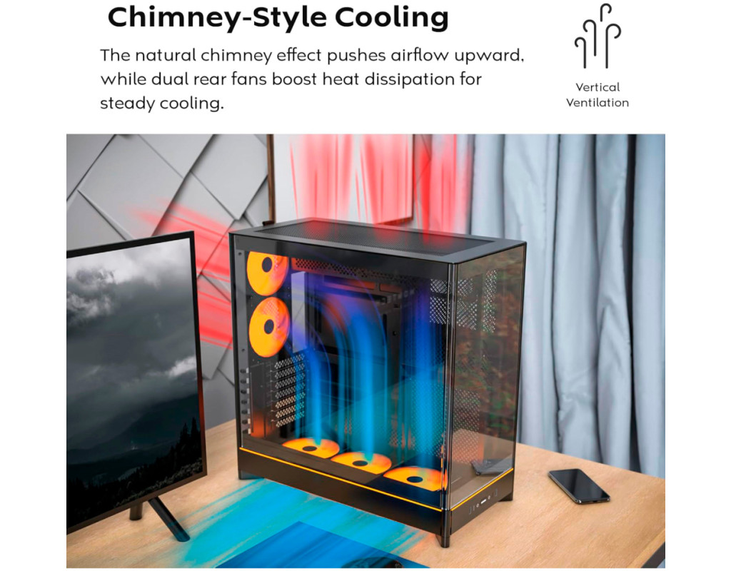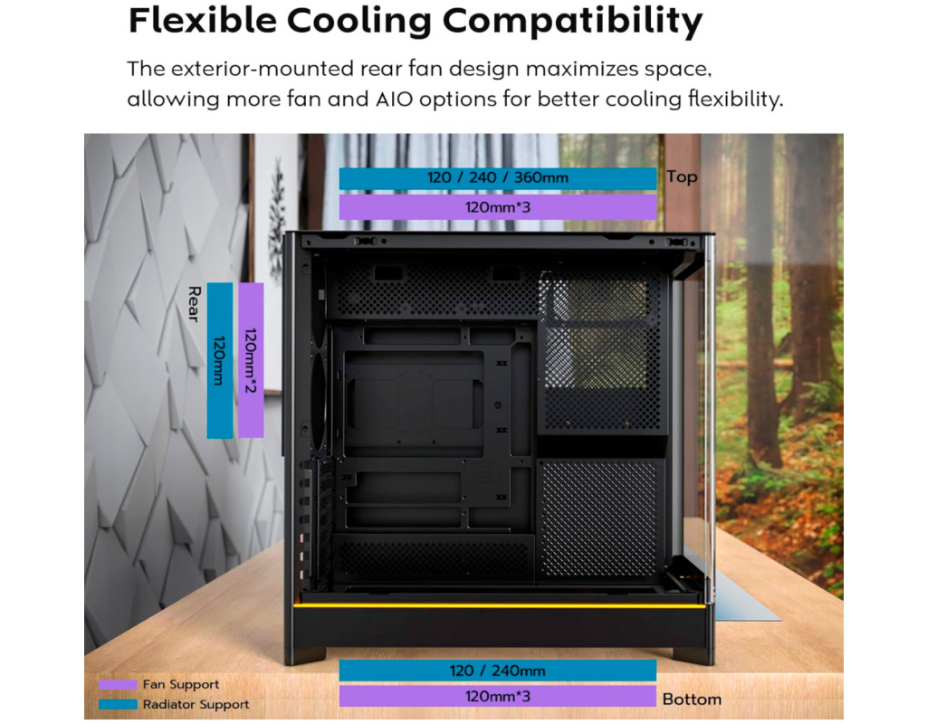 | Корпус для ПК MONTECH HS02 PRO (B) є втіленням досконалості у світі комп'ютерних комплектуючих, орієнтованим на геймерів, які цінують не лише функціональність, але й естетичний вигляд свого обладнання. Цей корпус створено для тих, хто прагне втілити сміливі ідеї в реальність, створюючи унікальну комп'ютерну систему, яка не схожий на жодну іншу. Стильний дизайн корпусу з прозорою передньою панеллю та вікном на бічній панелі дозволяє демонструвати всі компоненти системи, перетворюючи ваш ПК на справжній витвір мистецтва. Завдяки унікальній конструкції, що поєднує функціональність і естетику, цей корпус з легкістю впишеться в будь-який інтер'єр, привносячи в нього сучасність та технологічний шарм. Високоякісні матеріали та чіткість виконання підкреслюють надійність і довговічність цього продукту. MONTECH HS02 PRO пропонує безмежні можливості компонування. Підтримка різних типів материнських плат, зокрема Mini-ITX, ATX та Micro-ATX, відкриває для вас широкий спектр варіантів для налаштування системи під ваші потреби. Ви можете використовувати новітні платформи, такі як MSI Project Zero і ASUS BTF, без жодних обмежень. Сім слотів розширення збільшують гнучкість, дозволяючи комбінувати різні компоненти для досягнення оптимальної продуктивності. Особлива увага приділена системі охолодження. Корпус оснащений п'ятьма попередньо встановленими вентиляторами GF120 V2 ARGB, які не тільки забезпечують ефективне охолодження, але й додають кольорових акцентів завдяки інтегрованому підсвічуванню. Додаткові місця для вентиляторів на верхній панелі (3x12 см) та підтримка радіаторів рідинного охолодження (Back 120 мм, Top 360/240/120 мм, Bottom 120/240 мм) забезпечують підтримку стабільної температури навіть під найвищими навантаженнями, що є важливою перевагою для сучасних ігор та ресурсомістких додатків. Верхнє розташування блоку живлення, довжина якого може досягати до 200 мм, створює додаткові переваги для кабель-менеджменту, сприяючи організованості та ефективності збірки. Встановлення довгих відеокарт довжиною до 420 мм та процесорних кулерів висотою до 175 мм дозволяє створити систему з безкомпромісною продуктивністю. Інтуїтивні інтерфейси, розміщені у верхній частині корпусу, такі як USB Type C, два USB 3.0 і аудіороз'єми, забезпечують зручний та швидкий доступ до портів, покращуючи ергономічність використання. Завдяки широким можливостям для персоналізації, світлодіодній системі освітлення та інтеграції досконалості з функціональністю, MONTECH HS02 PRO є бездоганним вибором для тих, хто цінує якість і стиль. Це не просто корпус — це платформа для втілення ваших творчих задумів, здатна стати витвором комп'ютерного мистецтва. Пориньте у світ інноваційних технологій з MONTECH HS02 PRO і відчуйте себе справжнім творцем власної комп'ютерної реальності. |
