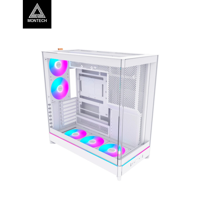 Симетрія стилю та функціональності MONTECH HS02 PRO — це корпус, що поєднує естетику сучасного дизайну з технічною досконалістю. Завдяки 8-градусній вигнутій скляній передній панелі та повністю прозорій боковій панелі, корпус створює ефект панорамного огляду, який підкреслює кожен елемент вашої збірки. Мінімалістичний зовнішній вигляд гармонійно поєднується з продуманою внутрішньою архітектурою, створюючи ідеальне середовище для реалізації найсміливіших ідей. Гнучкість компонування HS02 PRO дає змогу повністю змінити орієнтацію збірки: скляна бокова панель може розташовуватись як зліва, так і справа. Це забезпечує максимальну адаптацію до простору та персональних уподобань. Завдяки підтримці як стандартних, так і зворотних материнських плат (включно з MSI Project Zero та ASUS BTF), корпус відкриває нові можливості для організації кабелів і візуальної чистоти. Оптимізоване охолодження Інноваційна система вентиляції базується на природному ефекті димоходу: повітря надходить знизу та виводиться через верхню частину корпусу. Два задні вентилятори розміщені в новій конфігурації, що підвищує ефективність відведення тепла. Завдяки зовнішньому монтажу радіатора та зміщеному розташуванню вентиляторів, внутрішній простір звільняється для ще більшої кількості охолоджувальних компонентів. Готовність до запуску з коробки HS02 PRO постачається з п’ятьма попередньо встановленими вентиляторами GF120 V2 ARGB, які підтримують синхронізацію з материнською платою. Це дає змогу одразу насолоджуватись ефективним охолодженням і яскравими світловими ефектами. Усього доступно 29 режимів підсвічування, які легко налаштовуються через застосунок або BIOS. Інтерфейси та зручність На верхній панелі розташовані порти USB-C, два USB-A, а також аудіо- та мікрофонний роз’єм — усе для швидкого доступу до необхідних підключень. Верхнє розміщення блока живлення спрощує прокладання кабелів і сприяє кращій організації простору. Міцність і надійність Чотири посилені кутові стійки забезпечують рівномірний розподіл маси та стабільність конструкції. Це гарантує довговічність навіть при встановленні важких компонентів, таких як великі відеокарти чи системи рідинного охолодження. MONTECH HS02 PRO — це не просто корпус, а платформа для створення унікального ПК, що поєднує стиль, продуктивність і інженерну досконалість. |