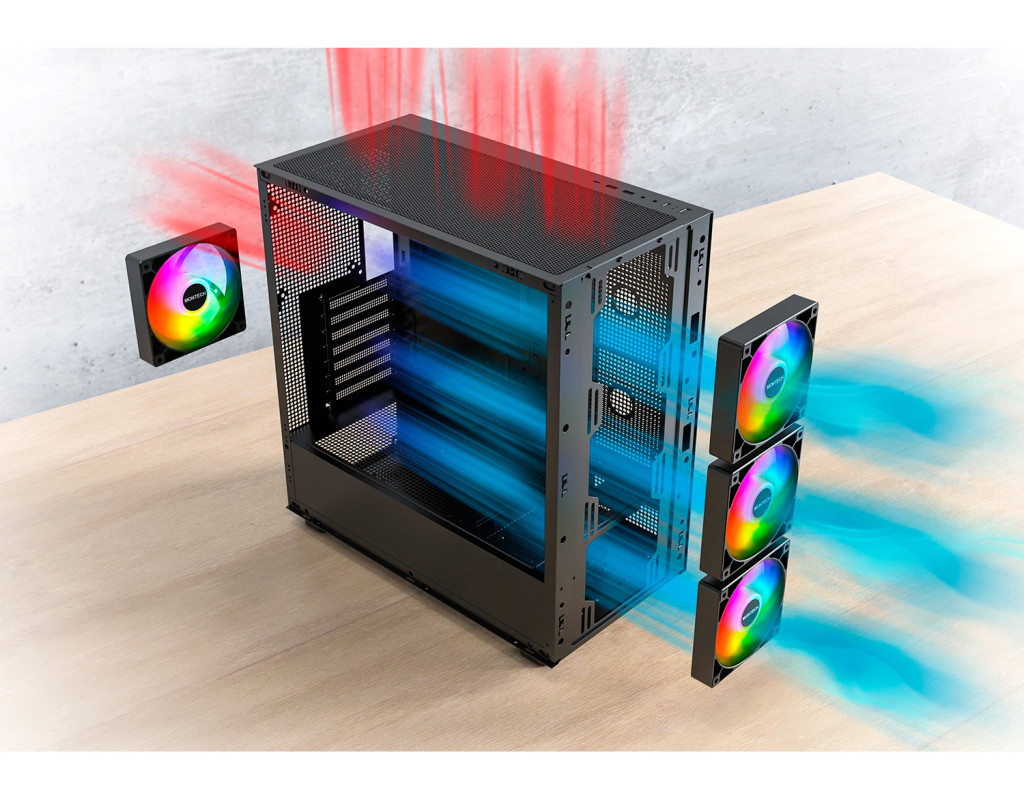| Корпус для ПК MONTECH XR WOOD (B) вирізняється поєднанням бездоганної якості, інноваційних технологій і вишуканого дизайну. Посібником для створення потужного та естетично привабливого геймерського комп'ютера, цей Miditower корпус з серії Montech XR Wood поєднує в собі сучасні рішення та стильність. Одна з найбільш вражаючих особливостей MONTECH XR WOOD (B) - це фронтальна панель з натуральної деревини американського горіха, яка додає корпусу ексклюзивності та природної елегантності, створюючи захопливий контраст із чорним кольором основи та світлодіодним підсвічуванням. Вона не лише візуально приваблива, а й підкреслює увагу до деталей у кожному елементі конструкції. Ефективне охолодження - перевага, якою може пишатися цей корпус. Завдяки встановленим чотирьом вентилятором GF120 ARGB PWM розміром 120 мм, температура компонувальних частин залишається оптимальною навіть під інтенсивними навантаженнями. Корпус пропонує можливість встановлення до 12 додаткових вентиляторів, а також підтримує рідинне охолодження з радіаторами від 120 мм до 360 мм, забезпечуючи максимальну ефективність системи охолодження. Ще одна значна перевага дизайну - захист від пилу. Завдяки високоякісним фільтрам, розміщеними по всьому корпусу, внутрішній простір залишається в ідеальній чистоті, що захищає компоненти від можливих пошкоджень і значно зменшує частоту їх обслуговування. Ергономічність розміщення компонентів дозволяє зручно монтувати материнські плати форм-факторів Micro-ATX, Mini-ITX і ATX, а також встановлювати відеокарти довжиною до 420 мм. Внутрішній простір вміщає два відсіки 3.5" і два 2.5", що гарантує значний обсяг зберігання даних, задовольняючи потреби навіть найбільш вимогливих користувачів. Мультимедійний інтерфейс MONTECH XR WOOD (B) представлений широким спектром роз'ємів: USB 3.0, USB Type-C і два аудіопорти, що забезпечують зручне підключення периферій і швидку передачу даних. Легке й інтуїтивно зрозуміле управління забезпечується світлодіодною системою підсвічування на передніх і задніх панелях, а також вентиляторами, що створюють унікальну атмосферу та додають комп'ютеру індивідуальності. Корпус має оптимальні габарити 230 x 475 x 456 мм і вагу 8.3 кг, що робить його придатним для розміщення як у домашньому, так і в офісному інтер'єрі. Нижнє розташування блоку живлення до 230 мм економить простір і забезпечує оптимальне тепловідведення для підтримки низької температури всередині корпусу. Вибравши корпус для ПК MONTECH XR WOOD (B), ви отримуєте ідеальне поєднання функціональності, стилю та продуктивності. Це не просто корпус, це ваш надійний партнер для створення потужної геймерської системи, що здатний задовольнити найсуворіші запити найвимогливіших користувачів. |