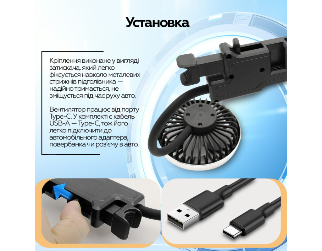- Назва продукту: USB автомобільний вентилятор
