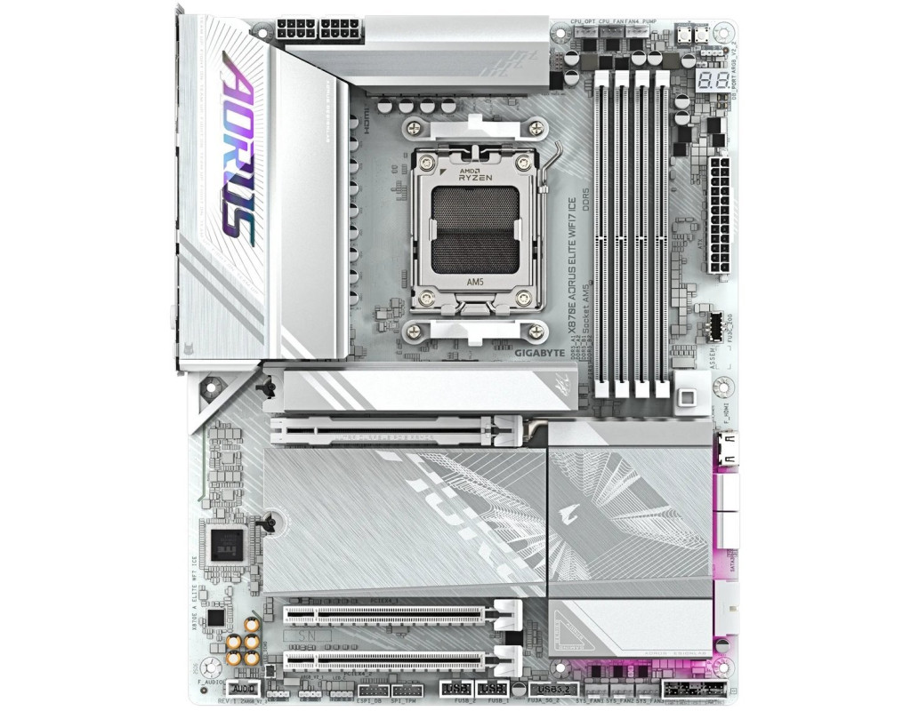 AMD Socket AM5: Підтримує процесори серії AMD Ryzen 9000 / 8000 / 7000 Цифрове рішення VRM із двома 16+2+2 фазами Двоканальні модулі пам’яті DDR5: 4*DIMM з підтримкою модулів пам’яті AMD EXPO WIFI EZ-Plug: швидка і проста конструкція для встановлення антени Wi-Fi EZ-Latch Plus: слоти PСIe і M.2 зі швидкою фіксацією та безгвинтовою конструкцією EZ-Latch Click: M.2 радіатори з безгвинтовою конструкцією Sensor Panel Link: вбудований відеопорт для простого налаштування панелі в корпусі Дружній користувацький інтерфейс: Multi-Theme, AIO Fan Control і Q-Flash Plus Auto Scan у BIOS і SW Новий AORUS Power Center в HWinfo для моніторингу фаз живлення процесора в реальному часі Надшвидке зберігання даних: 4* слоти M.2, включно з 3* PCIe 5.0 x4 Ефективне тепловиділення: VRM Thermal Armor Advanced з підсвічуванням I/O ZONE AORUS LIGHTING і M.2 Thermal Guard XL Швидке підключення до мережі: 2.5GbE LAN і Wi-Fi 7 зі спрямованою антеною з надвисоким коефіцієнтом посилення Розширені можливості підключення: два USB4 Type-C з DP-Alt, HDMI Надійне аудіо: Конденсатори Realtek ALC1220 HD Audio & Audiophile Grade Capacitors Ultra Durable PCIe Armor: металева задня панель слота PCIe x16 забезпечує підвищену міцність PCIe UD Slot X: слот PCIe 5.0 x16 з 10-кратним посиленням для відеокарти |