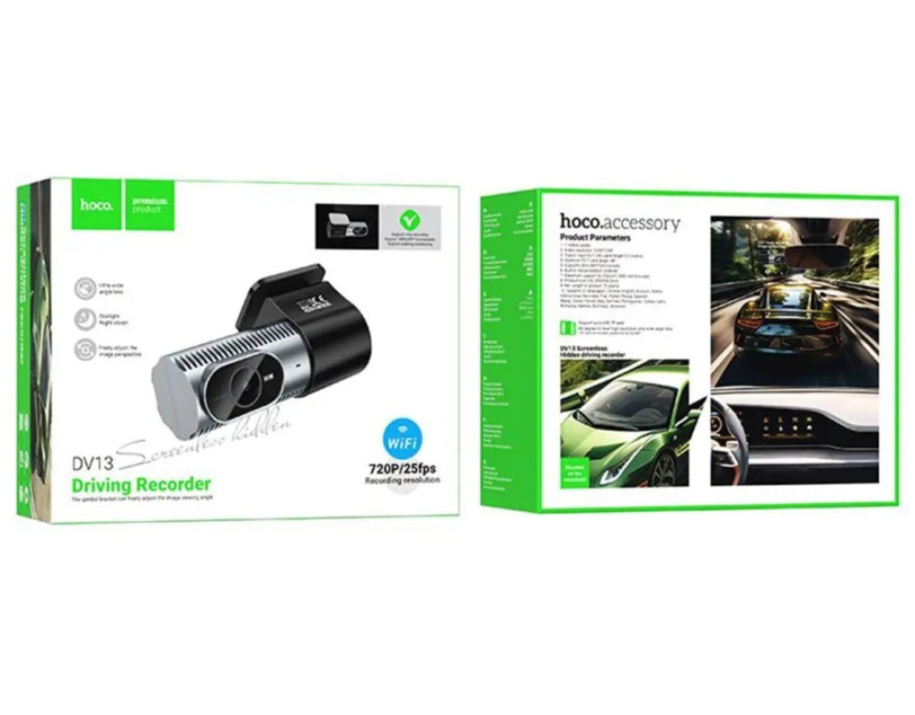 Відеореєстратор Hoco DV13 - це компактне та функціональне рішення для забезпечення безпеки відеофіксацією дорожньої обстановки. Оптимальний набір функцій і простота в управлінні роблять його надежним спутником в будь-якій поїздці. - не перекриває огляд дороги і не буде відволікати увагу. − Якісні електронні компоненти та корпус з надійної комбінації полікарбонату та ABS-пластику. − Знімне кріплення з клейкою основою для фіксації в необхідному місці на лобовому склі. − Практична поворотна конструкція для зручного і />− Сучасний, високопродуктивний чіпсет JL JL5212 з матрицею SC1346 1MP, об'єктивом з углом огляду 88° і діафрагмою F2.7. − Якісна зйомка відео з роздільною здатністю 1280 × 720 пікселів− частота 2 додаток bobo CAM. − Технологія нічного бачення Starlight Night Vision, функції циклічного запису та мониторингу паркування. − Схована кнопка для скидання налаштувань та слот для картки пам'яті об'ємом до 64Gb. − Вбудований аккумулятор ємністю 2'
