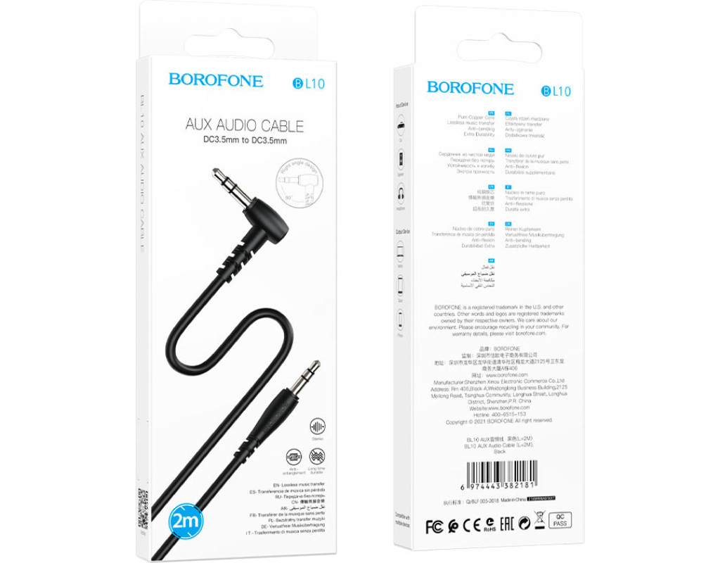 Аудіо-кабель BOROFONE BL10 використовується для підключення аудіопристроїв до обладнання для відтворення звуку, що має двосторонній штекер AUX 3.5 мм. Сумісність: