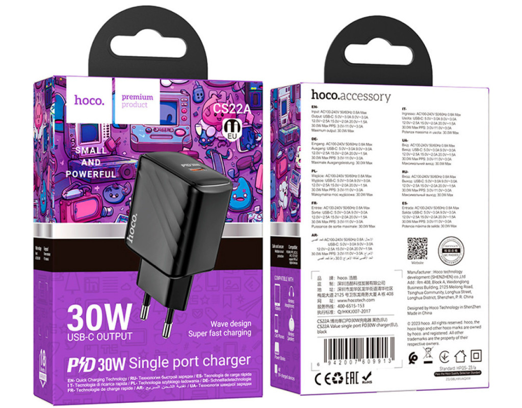 | Зарядний пристрій HOCO CS22A Value USB-C PD30W Black - це ідеальне рішення для тих, хто цінує якість, безпеку та універсальність в одному пристрої. Цей сучасний адаптер відзначається елегантним дизайном та потужною функціональністю, що поєднує переваги технологій Quick Charge 3.0 та Power Delivery. Вони дозволяють заряджати ваші пристрої на максимальній швидкості, економлячи ваш час. HOCO CS22A підходить для широкого спектру електроніки: він ідеально заряджає смартфони, планшети, фітнес-браслети, геймпади, екшн-камери та навіть TWS навушники. Завдяки вихідному підключенню USB Type-C, цей зарядний пристрій забезпечує максимальний вихідний струм 2.5 А та потужність до 30 Вт, що гарантує швидку та ефективну зарядку. Корпус пристрою виготовлений із вогнетривкого пластику, що підвищує його стійкість до пошкоджень і забезпечує безпечне використання. Компактний розмір та чорний колір роблять HOCO CS22A стильним компаньйоном для будь-якої подорожі або відрядження. Ви завжди будете готові до несподіваних ситуацій завдяки шестирівневій системі захисту від перевантажень, короткого замикання та перегріву, що зберігає ваші гаджети у безпеці. Виберіть HOCO CS22A для життя в швидкому темпі, адже він пропонує надійні зарядні рішення для сучасної людини, де кожна хвилина має значення. Це ваш надійний партнер у світі технологій. |