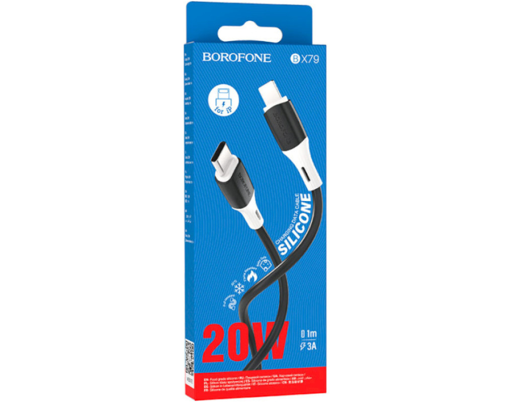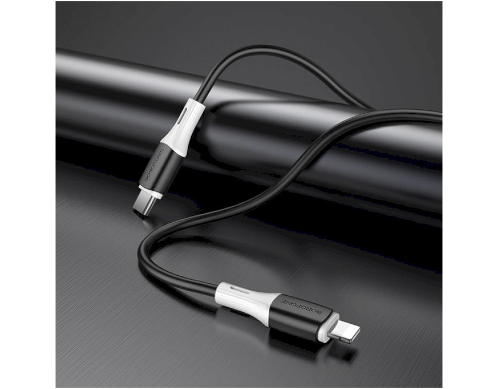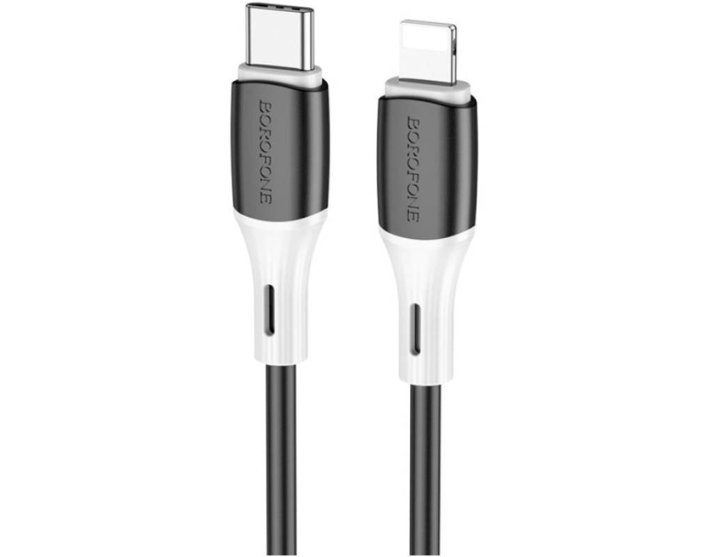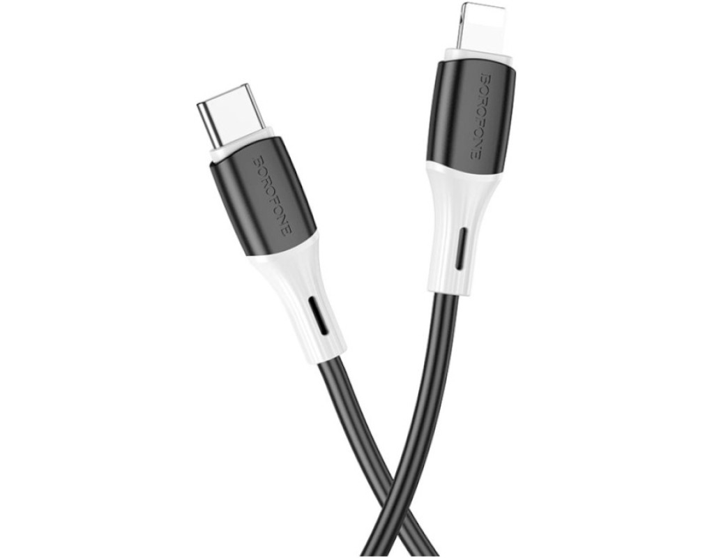 Дата кабель USB-C to Lightning 1.0m 3A 20W silicone BX79 black BOROFONE (6974443384727)