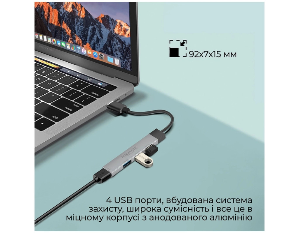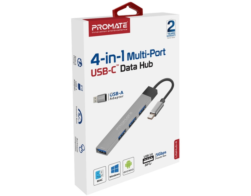 4 USB порти, вбудована система захисту, широка сумісність і все це в ультракомпактному корпусі з анодованого алюмінію. Promate LiteHub-4 - найменший у світі хаб із USB-C to USB-A адаптером, стане оптимальним рішенням на кожен день.