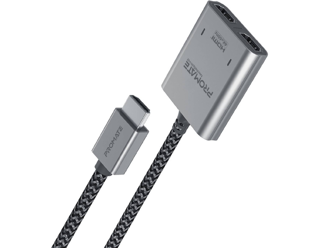 | Promate MediaSplit-H2 - компактний HDMI розгалужувач, який дозволяє вивести картинку з одного джерела на два екрани з роздільною здатністю 4K UHD 60 Hz без перешкод та втрати якості.