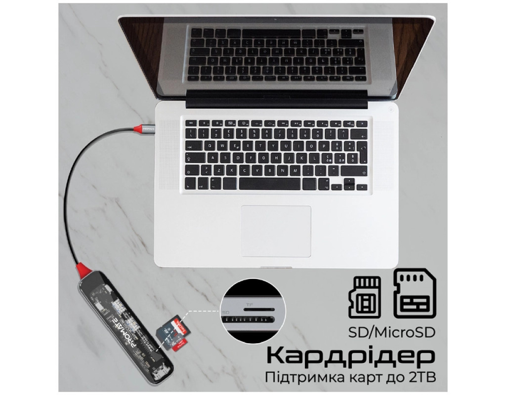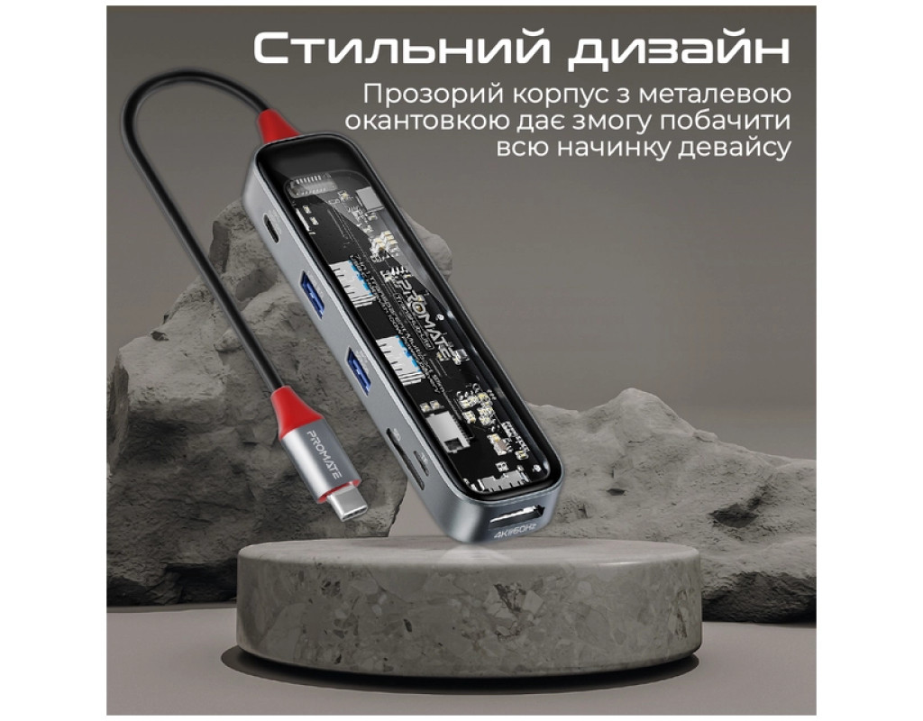 TransHub-Lite - Type-C хаб із лінійки 2024 року від Promate. Стильне і функціональне рішення для безперебійної роботи в режимі багатозадачності.