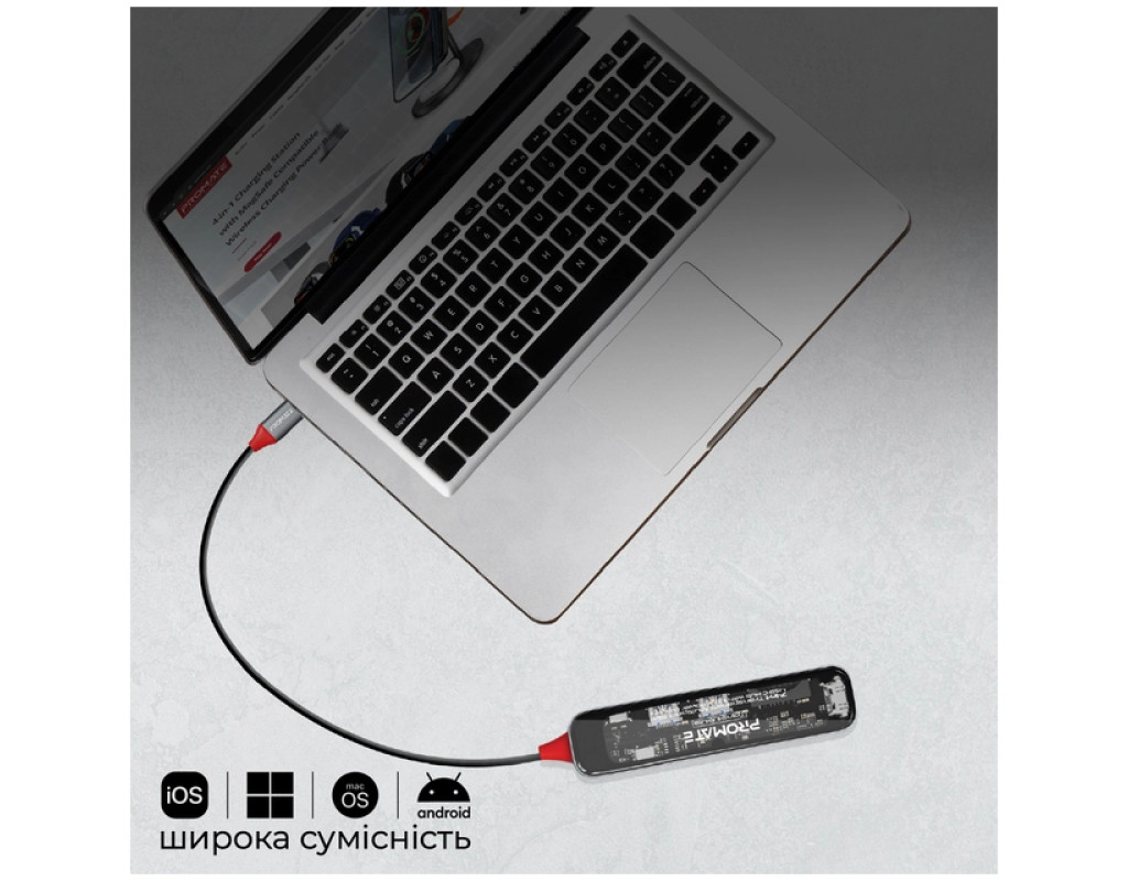 - Plug & Play: Windows, Mac OS, iOS, Android. Не потребує встановлення програмного забезпечення або драйверів, тобі потрібен лише вільний USB-С порт (Type-C 3.1+ / Thunderbolt 3.0+).