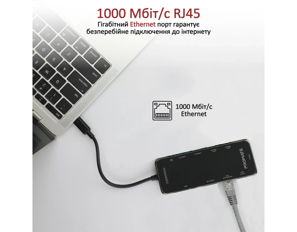 Type-C хаб PrimeHub-Pro — флагманська модель із лінійки 2021 року від Promate. Широкий функціонал і максимальна стабільність в портативному та стильному корпусі з першокласних матеріалів. Ґаджет об'єднав у собі все найкраще з хабів на сьогодні! Особливості: - USB Type-C PD: Завдяки технології Power Delivery, хаб може приймати й передавати живлення від джерела на потужності до 100 Вт.