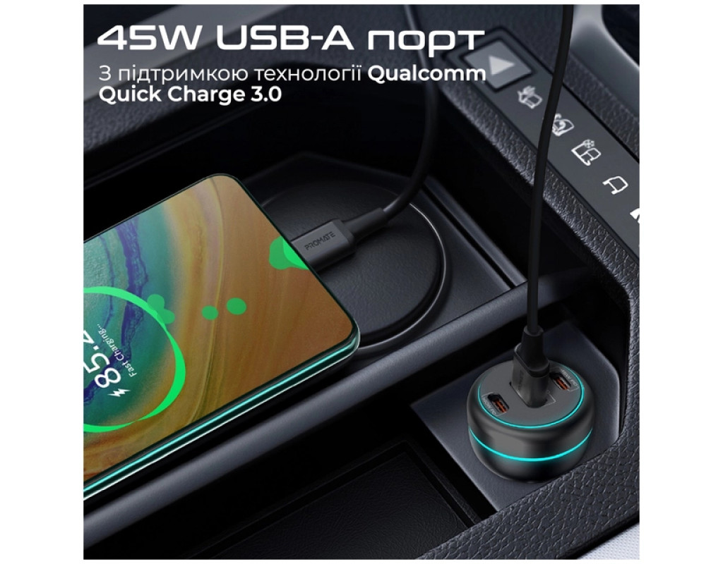 | Зарядний пристрій Promate 2xUSB-C PD + USB-A QC3.0 (powerdrive-230) - ваш універсальний помічник у дорозі, який поєднує в собі інноваційні технології з вражаючою потужністю до 230 Вт. Цей компактний адаптер, завдяки живленню від прикурювача автомобіля, дозволяє з легкістю заряджати одночасно три пристрої за допомогою двох портів USB-C і одного порту USB-A. Користуйтеся перевагами універсальних технологій Power Delivery та Quick Charge 3.0, які забезпечують швидке та ефективне заряджання гаджетів. Один з USB-C портів здатен видавати до 140 Вт, що ідеально підходить для ноутбуків та планшетів, а інший порт USB-C на 45 Вт підійде для смартфонів і повербанків. Порт USB-A також підтримує до 45 Вт, забезпечуючи живлення для екшн-камер, фітнес-браслетів, гелмпадів і TWS навушників. Якість виготовлення пристрою також заслуговує на увагу. Корпус з вогнетривкого ABS-пластику у поєднанні з анодованим алюмінієм гарантує його довговічність і безпеку. Вбудований чіп Smart IC захищає ваші пристрої від перегріву, перепадів напруги, коротких замикань і надлишкового заряджання, що робить цей зарядний безпечним вибором для будь-якої ситуації. Компактні розміри Promate PowerDrive-230 (42x76x18 мм) дозволяють легко вмістити його в автомобілі, а пружинні фіксатори забезпечують надійне кріплення у прикурювачі. З цим зарядним пристроєм ви зможете завжди зберігати свої пристрої зарядженими, реалізуючи максимум своїх можливостей на ходу. |