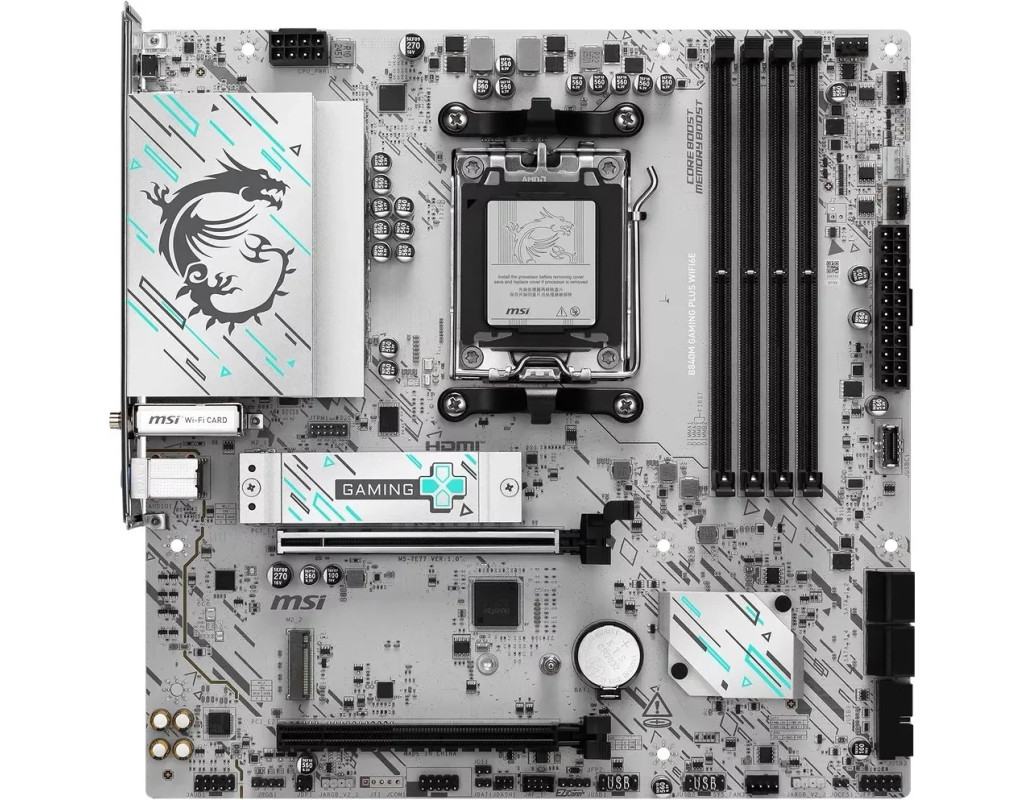 | Материнська плата MSI B840M GAMING PLUS WIFI6E є втіленням інновацій та продуктивності для справжніх геймерів. Це не просто компонента вашого ПК, а серце системи, яке гарантує фантастичну швидкість і стабільність у будь-якій ситуації. Розроблена на базі новітнього чіпсета AMD B840, ця материнська плата забезпечує надійну основу для вашого геймерського комп'ютера. MSI B840M GAMING PLUS підтримує DDR5 пам'ять, що встановлює нові стандарти швидкості та ефективності. З чотирма слотами для оперативної пам'яті, ця плата дозволяє розширити обсяг до вражаючих 256 ГБ з максимальною частотою 8000 MHz. Підтримка двоканального режиму гарантує, що ви отримаєте найкращий ігровий досвід, без затримок і падінь продуктивності навіть під час запуску самих вимогливих додатків. Однією з головних переваг цієї материнської плати є її мережеві можливості. Оснащена передовою мережевою картою Realtek 8125D, плата надає один LAN-порт зі швидкістю до 2,5 Гбіт/с, що забезпечує фантастичну швидкість і стабільність підключення до Інтернету. Інтеграція технології Wi-Fi 6E забезпечує екстраординарну бездротову швидкість і надійність з'єднання, у той час як підтримка Bluetooth дозволяє легко підключати бездротові пристрої. MSI B840M GAMING PLUS має вражаючий набір зовнішніх і внутрішніх портів для найвибагливіших користувачів. Вона оснащена трьома USB 3.2 Gen 1 портами, USB 3.2 Gen2 Type-C, двома USB 2.0, HDMI й RJ45 для максимальної гнучкості підключення. Внутрішні слоти включають чотири SATA 6.0 Gb/s і два M.2 2280 для швидкого зберігання даних. Також присутня підтримка RAID конфігурацій (1, 10, 0), що забезпечує надійність і захист ваших даних. Завдяки інноваційному тепловому дизайну, материнська плата забезпечує ефективне охолодження всіх компонентів, навіть під час найактивніших ігрових сесій, що запобігає перегріванню системи. Це гарантує бездоганну стабільність і продуктивність, незалежно від рівня навантаження. Підтримка операційних систем Windows 11 і Windows 10 робить цю плату універсальною та готовою до роботи з будь-якими сучасними програмами та іграми. Форм-фактор Micro-ATX дозволяє встановити плату навіть у компактні корпуси, зберігаючи при цьому всі функціональні можливості. У підсумку, материнська плата MSI B840M GAMING PLUS WIFI6E - це бездоганний вибір для тих, хто цінує високу продуктивність, інноваційні технології та абсолютну надійність. Вона створена для гравців, які прагнуть досягти максимальних результатів у ігрових та робочих завданнях, встановлюючи нові стандарти якості та комфорту в сучасному світі комп'ютерних технологій. |