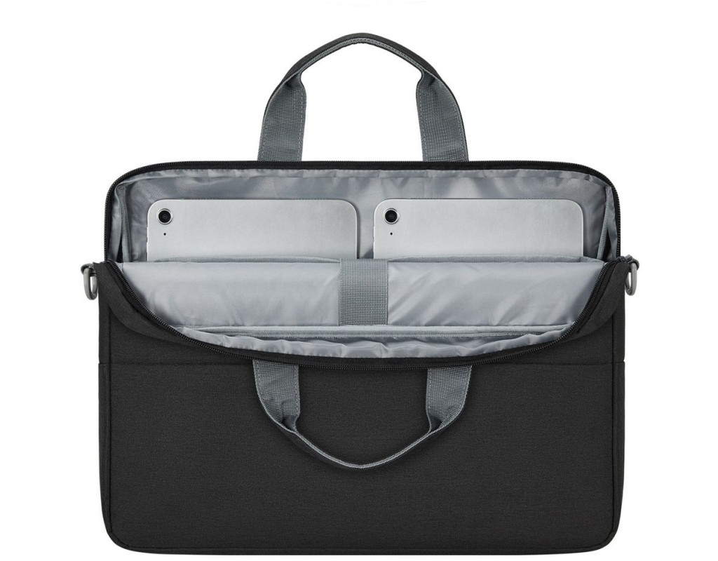 М'які ручки для перенесення Ми знаємо, як важливий комфорт для гарної якості життя і міцного здоров'я. Минули ті часи, коли ми носили важкі, громіздкі шкіряні портфелі з великими, незручними ручками. Зараз ми добре розуміємо, що від зручного багажу залежить і рівень комфорту, і результати роботи. Для вашого максимальної зручності, щоб не травмувалися долоні та пальці, ми обладнали нашу сумку м'якими ручками для перенесення. Завдяки цьому, ви плідно проведете свій день і зможете ефективно виконувати поточні завдання.