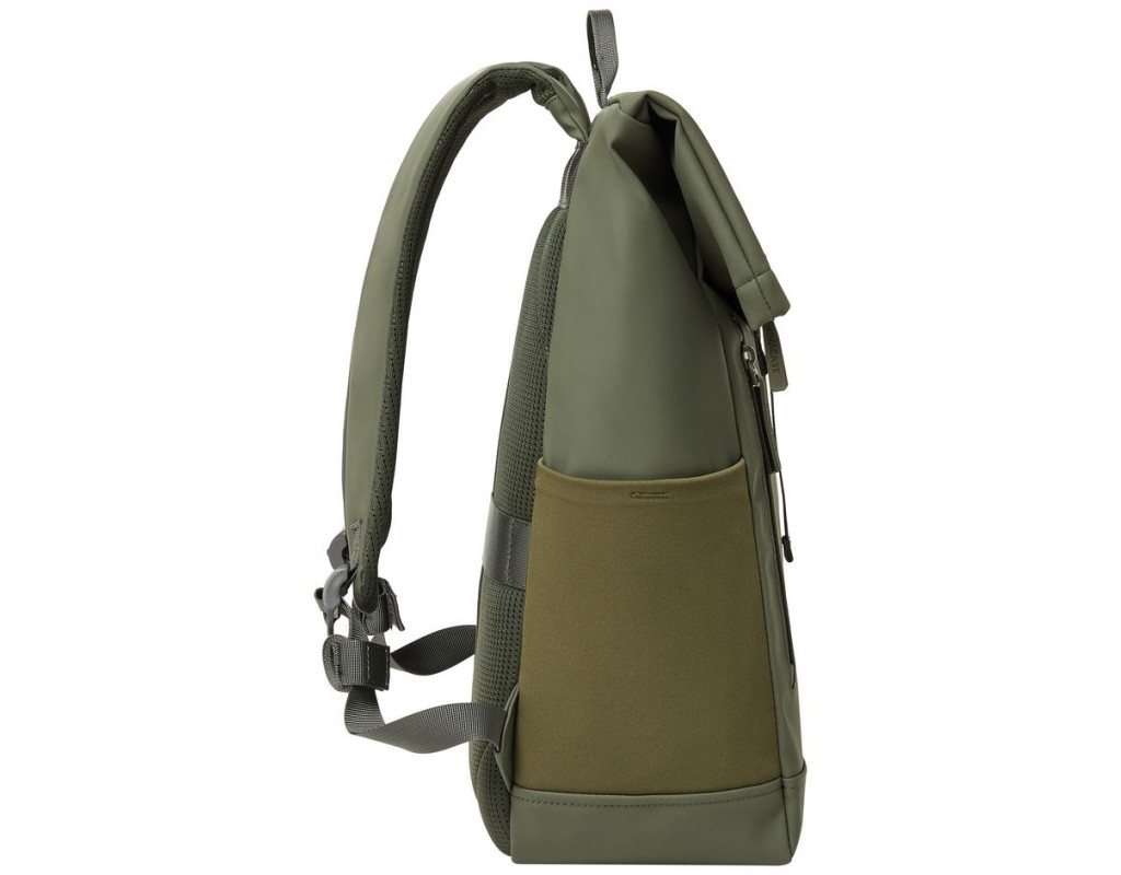 - Особливістю конструкції є застібка зі згортанням верхнього клапана в рулон, що дає можливість значно змінювати об'єм рюкзака
