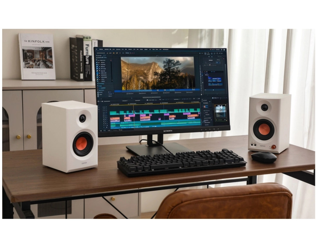 Створені для чесного відтворення звуку Продумана акустична архітектура, спеціальне налаштування та бездоганне виконання сприяють точному відтворенню аудіо з усіма деталями й нюансами. Ідеальний вибір для домашніх студій, відеомонтажу та щоденного прослуховування. Рівномірна частотна характеристика Модель Edifier MR3 забезпечує збалансоване звучання в широкому діапазоні — від 52 Гц до 40 кГц. Це дозволяє отримати нейтральне, прозоре аудіо. Спеціальні хвилеводи високочастотних динаміків із заглибленнями покращують спрямованість і деталізацію ВЧ-відтворення, забезпечуючи якісний звук у ширшій зоні прослуховування. Аудіо високої роздільності Аналоговий фронт-енд і підсилювач класу D від Texas Instruments мають спеціальну конфігурацію для обробки сигналу 24 біт / 96 кГц. Це гарантує точне перетворення та підсилення звуку з мінімальними втратами. Акустична компенсація приміщення Кнопки на задній панелі та мобільний застосунок EDIFIER ConneX дають змогу адаптувати звук відповідно до акустичних особливостей кімнати:
