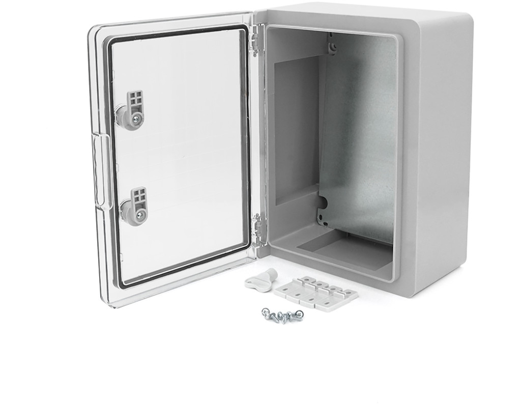 | Бокс міцний з ABS пластику з монтажною панеллю 350х250х150, з прозорими дверцятами, IP65 |