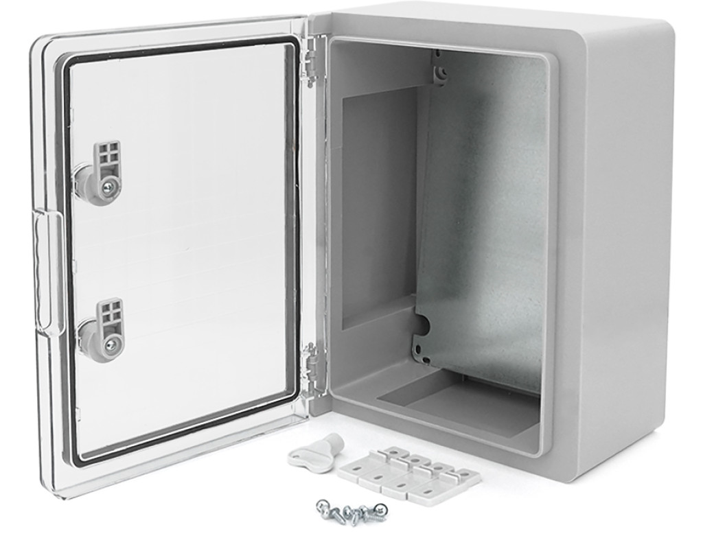 | Матеріал виготовлення: корпус: АБС-пластик; прозорі дверцята: полікарбонат; ущільнювач: поліуретанова піна; монтажна панель: оцинкована сталь. Особливості конструкції: -Ударострокове виконання IK10; -виготовлені з матеріалу, стійкого до UV-випромінювання, корозії та плісняви; -Зручний монтаж обладнання завдяки знімній монтажній панелі; -можуть встановлюватися в приміщеннях з високим рівнем вологості або зі значним вмістом пилу та на відкритому повітрі; -широка сфера застосування; -комплектація: монтажна панель, ключ, набір для кріплення (пластикові кронштейни для кріплення корпусу до стіни 4 шт.) Товщина монтажної панелі, мм -1 Ударостійкість - IK 10 Ступінь захисту - IP 65 Висота, мм 400 Ширина, мм 300 Глибина, мм 170 Тип виконання корпусів навісний Колір (АБС пластикату) - світло-сірий Діапазон робочих температур, ⁰С -40...+70 |