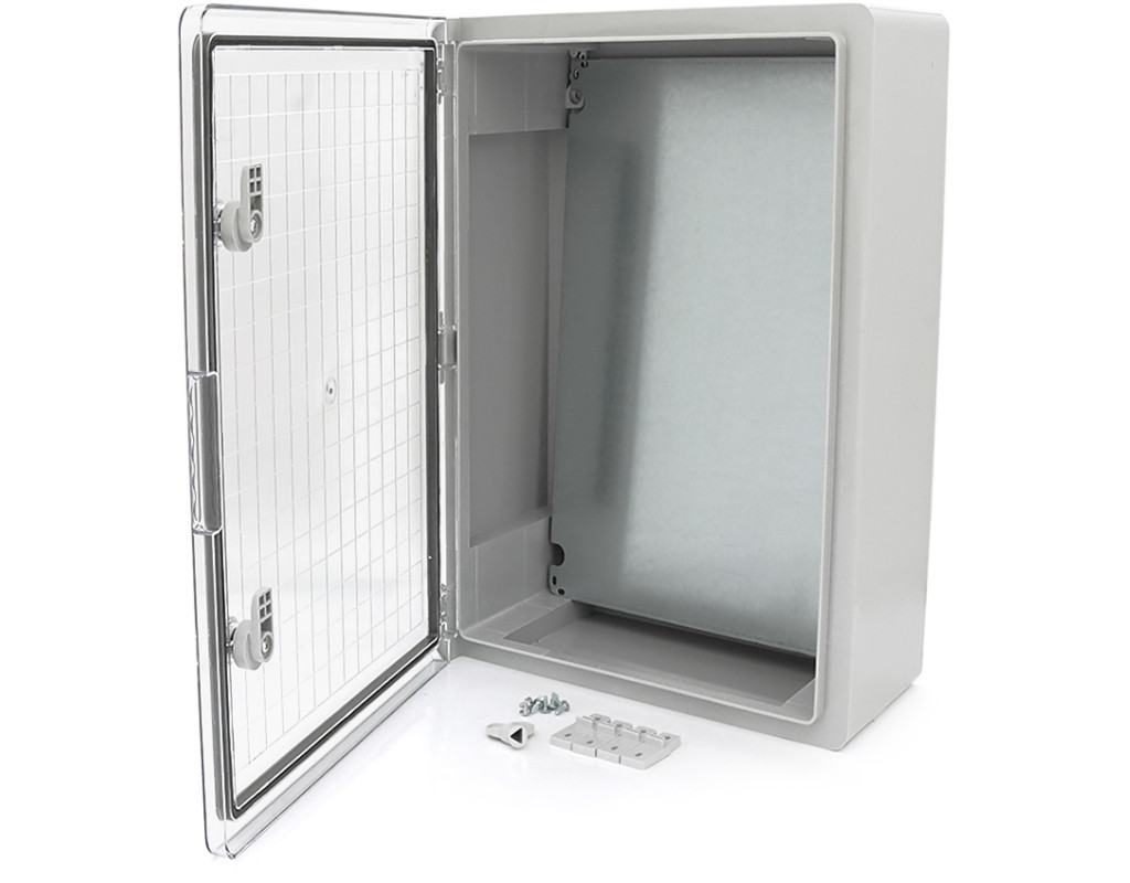 | Матеріал виготовлення: корпус: АБС-пластик; прозорі дверцята: полікарбонат; ущільнювач: поліуретанова піна; монтажна панель: оцинкована сталь. Особливості конструкції: -Ударострокове виконання IK10; -виготовлені з матеріалу, стійкого до UV-випромінювання, корозії та плісняви; -Зручний монтаж обладнання завдяки знімній монтажній панелі; -можуть встановлюватися у приміщеннях з високим рівнем вологості або зі значним вмістом пилу та на відкритому повітрі; -широка сфера застосування; -комплектація: монтажна панель, ключ, набір для кріплення (пластикові кронштейни для кріплення корпусу до стіни 4 шт.) Товщина монтажної панелі, мм -1 Ударостійкість - IK 10 Ступінь захисту - IP 65 Висота, мм 600 Ширина, мм 400 Глибина, мм 200 Тип виконання корпусів навісний Колір (АБС пластикату) - світло-сірий Діапазон робочих температур, ⁰С -40...+70 |