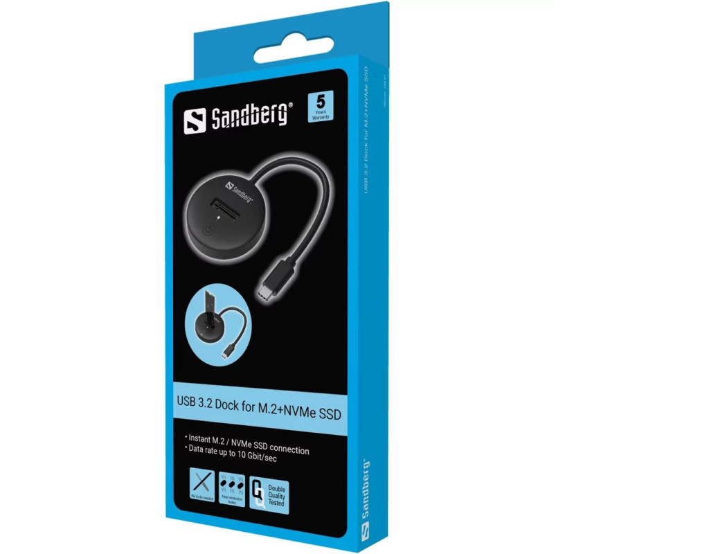 Док-станція Sandberg USB3.2 Type-C-->SSD M.2 забезпечує просте зовнішнє підключення твердотілих накопичувачів SSD M.2 і NVMe різного розміру. Для встановлення SSD вам не знадобляться інструменти. Док-станція Sandberg USB3.2 Type-C-->SSD M.2 підтримує SSD об’ємом до 4 ТБ та швидкість обміну даними до 10 Гбіт/с. Корпус док-станції Sandberg USB3.2 Type-C-->SSD M.2 сприяє кращому розсіюванню тепла, що запобігає її нагріванню навіть при максимальних навантаженнях. |