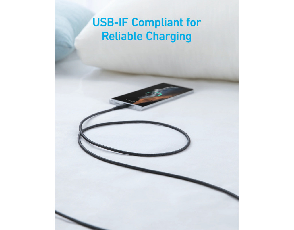 Сертифікований кабель для безпечного та надійного заряджання практично будь-якого пристрою USB-C (Несумісний із зарядками Power Delivery).