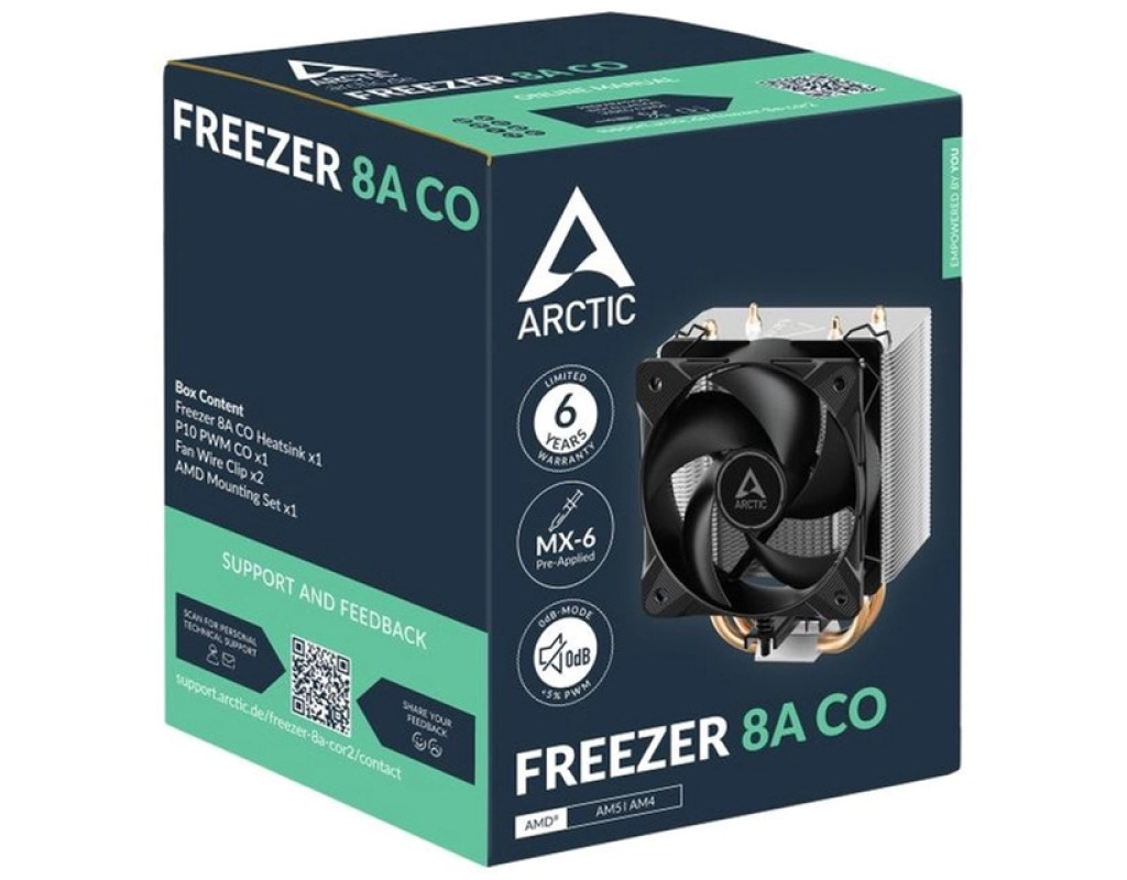 ARCTIC Freezer 8A CO — це компактний кулер для процесорів AMD, розроблений спеціально для тривалого використання в умовах постійного навантаження. Завдяки застосуванню подвійного шарикопідшипника, він демонструє підвищену стійкість до пилу та високих температур, що робить його ідеальним вибором для серверів, робочих станцій або систем із цілодобовим режимом роботи.