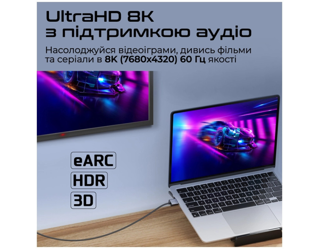 Технічні характеристики: - Роздільна здатність: 8K 60Hz, 4K 120Hz