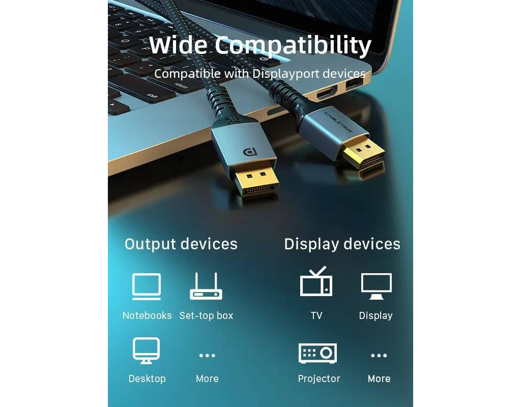 Як правило, кабель необхідний для з’єднання дисплея з комп’ютером, або аудіо та відеоапаратури із сучасним інтерфейсом DisplayPort. Підтримка: 8K 60 Гц / 4K 144 Гц / 2K 165 Гц / 1080P 240 Гц / Dynamic HDR / PLCM / AC-3 / DTS та інші аудіо формати. |