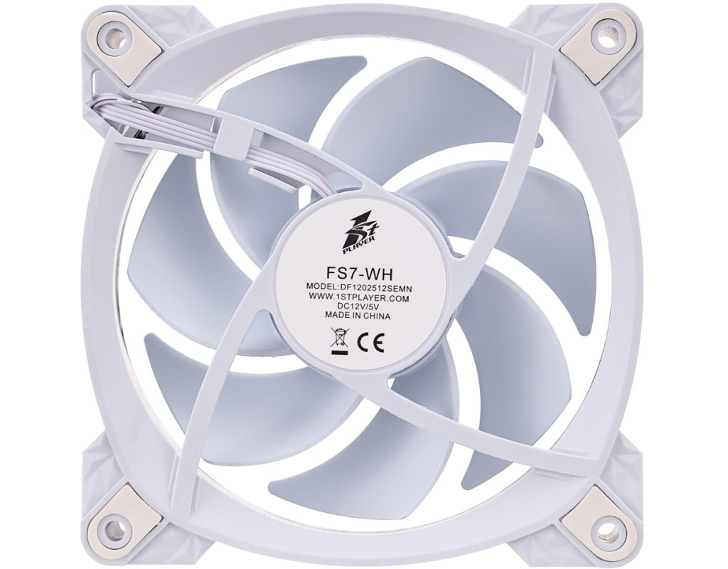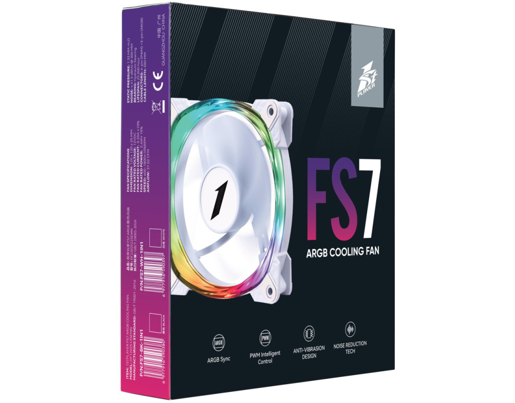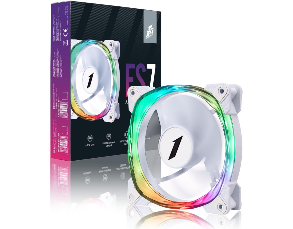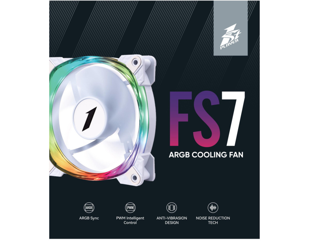 | 1stPlayer FS7 - 9-лопатевий вентилятор, який забезпечує тиху роботу. Конструктивно закладена антивібраційна система кріплення для зниження шуму. Вентилятор підтримує синхронізацію ARGB для узгоджених світлових ефектів. Особливістю 1stPlayer FS7 є унікальна спіральна текстурована рамка з підсвіткою. |