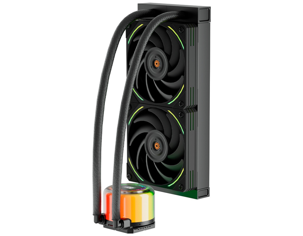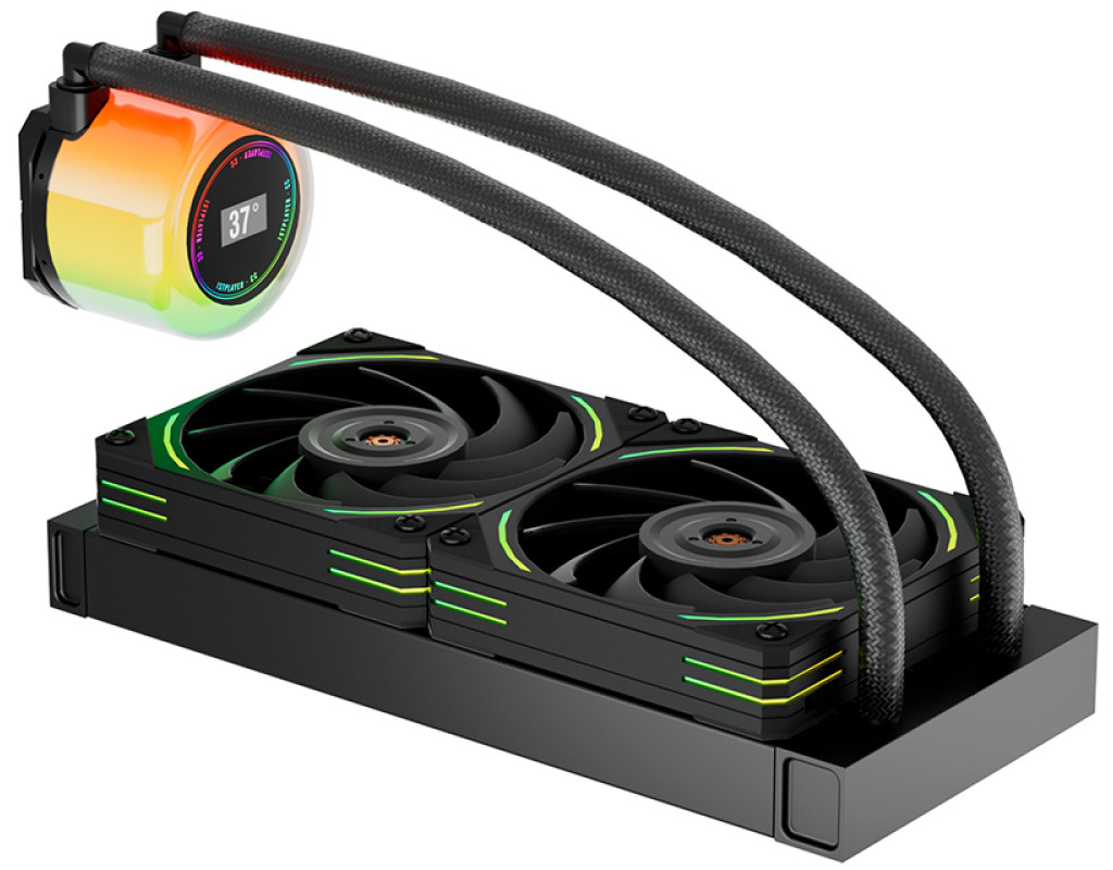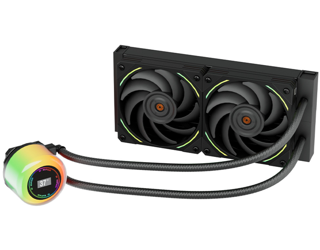 | CC-240 сучасна система водяного охолодження від виробника 1stPlayer Реберний радіатор високої щільності що забезпечує ефективне відведення тепла. Підсвітка ARGB, яка синхронізується з материнською платою. Мідна ендотермічна холодна пластина для оптимального поглинання тепла. 9-лопатевий вентилятор FDB з регульованою температурою для малошумної роботи. Охолоджувальна головка забезпечує відображення температури в реальному часі для точного моніторингу. |
