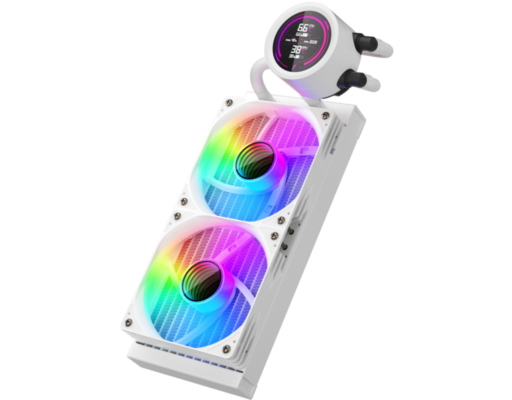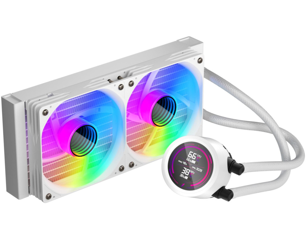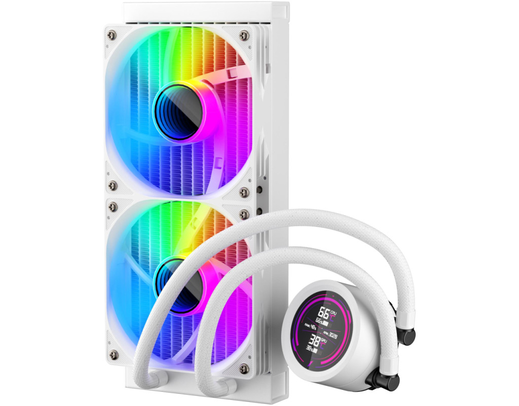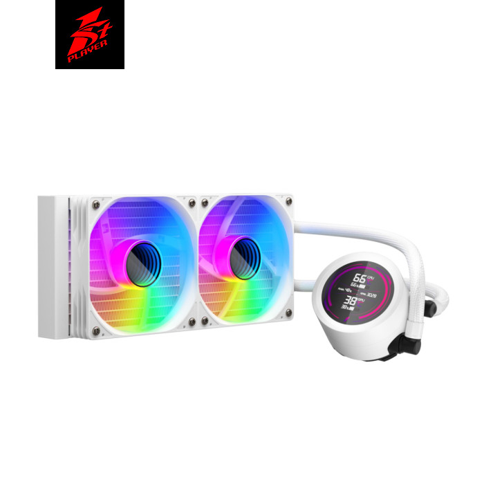 | TS4-240 сучасна система водяного охолодження від виробника 1stPlayer Реберний радіатор високої щільності що забезпечує ефективне відведення тепла. Підсвітка ARGB, яка синхронізується з материнською платою. Мідна ендотермічна холодна пластина для оптимального поглинання тепла. 9-лопатевий вентилятор FDB з регульованою температурою для малошумної роботи. Охолоджувальна головка забезпечує відображення температури в реальному часі для точного моніторингу. |