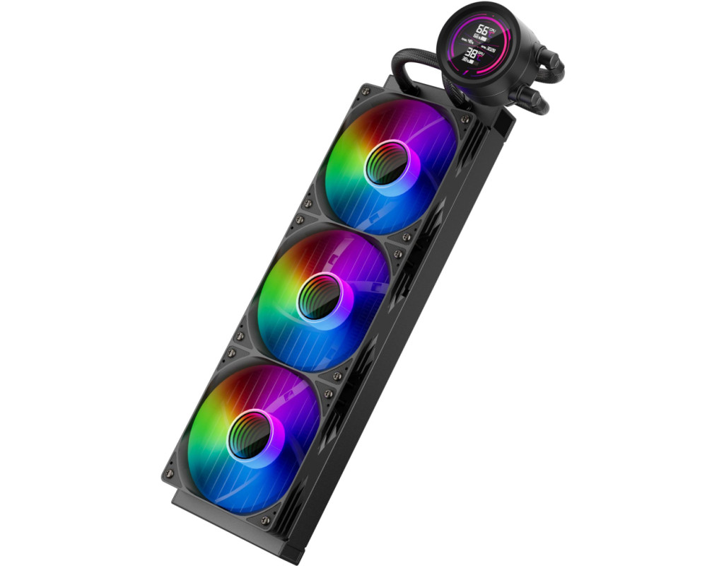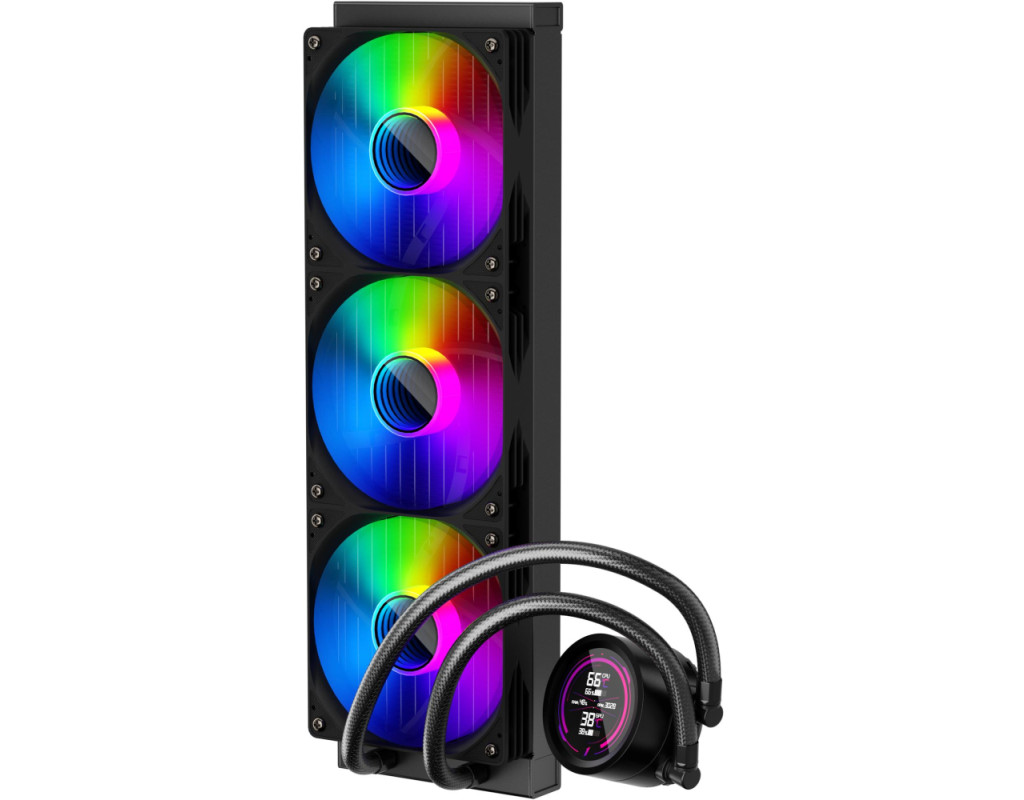 | TS4-360 сучасна система водяного охолодження від виробника 1stPlayer Реберний радіатор високої щільності що забезпечує ефективне відведення тепла. Підсвітка ARGB, яка синхронізується з материнською платою. Мідна ендотермічна холодна пластина для оптимального поглинання тепла. 9-лопатевий вентилятор FDB з регульованою температурою для малошумної роботи. Охолоджувальна головка забезпечує відображення температури в реальному часі для точного моніторингу. |