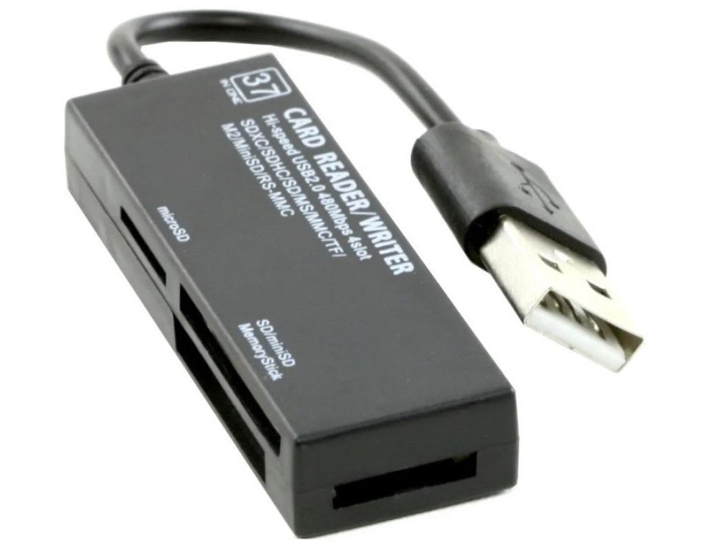 | Картридер - це пристрій, призначений для читання інформації з карток пам’яті, таких як картки SD, microSD, CompactFlash та інших. Зовні картридери можуть сильно відрізнятися, але найчастіше вони є невеликим прямокутним або квадратним блоком з роз’ємами для підключення карт пам’яті. Підключаються до комп’ютера або ноутбука, як правило, через порт USB. |