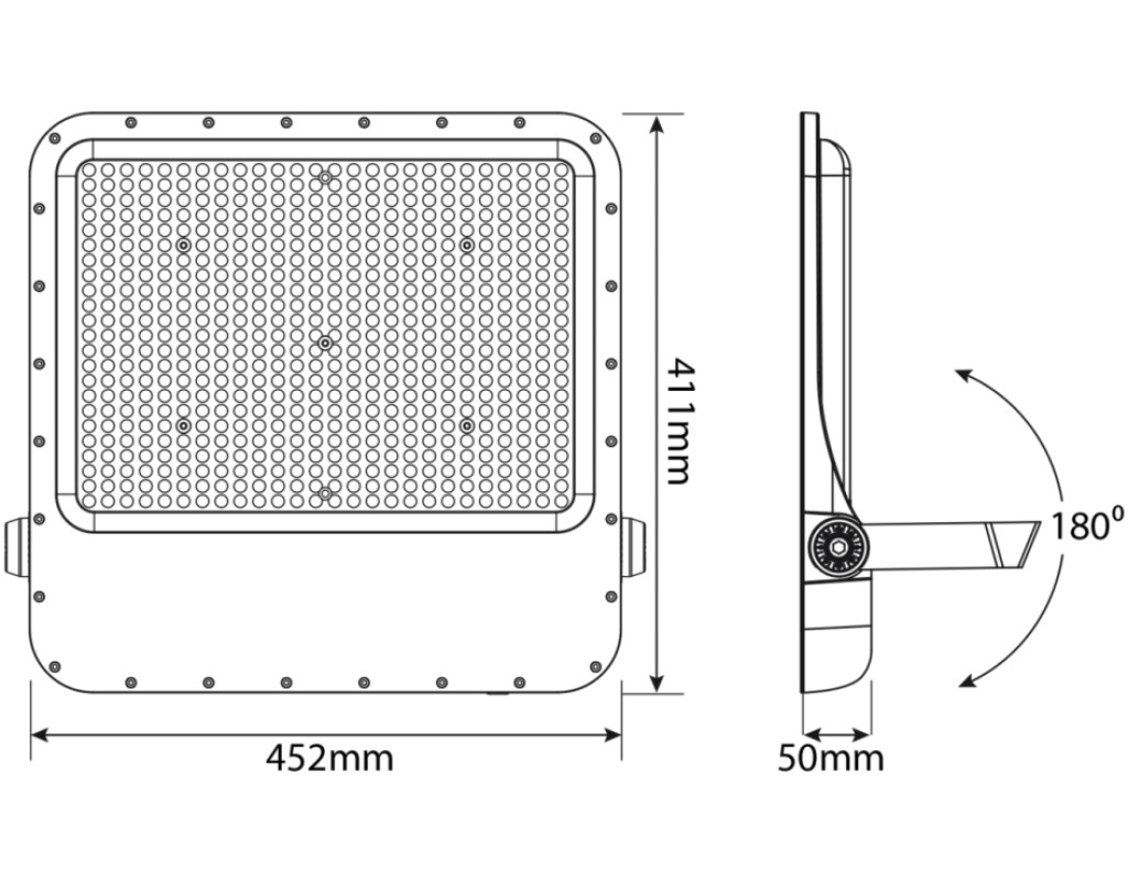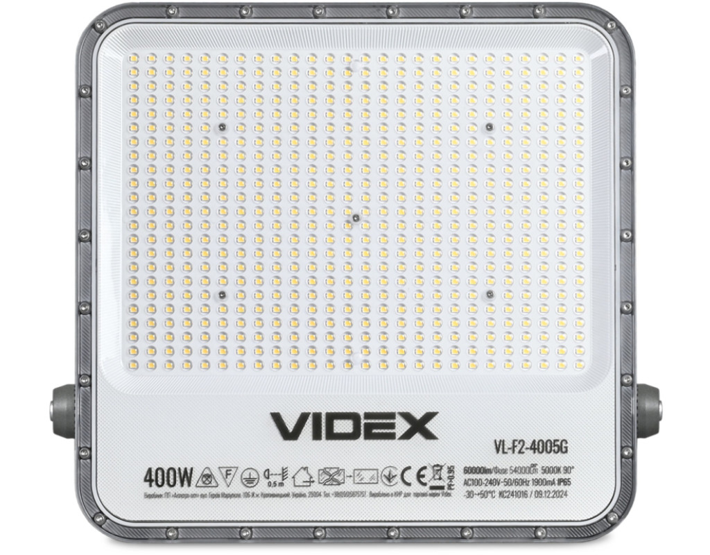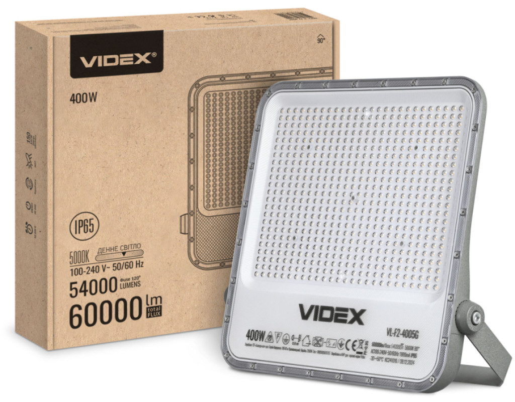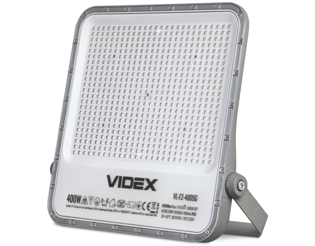 | Світлодіодний прожектор VIDEX PREMIUM 400W 5000K (VL-F2-4005G) – високотехнологічне джерело світла, яке забезпечує рівномірний світловий потік і максимальну потужність з першої секунди роботи. Призначений для загального та декоративного освітлення архітектурних об'єктів, торговельних площ, рекламних щитів, створення світлових ефектів, освітлення відкритої території приватних садиб та промислових підприємств. Розміри прожектора становлять 452x411x50мм. Корпус LED прожектора чудово протистоїть волозі, дощу, снігопадам та іншим погодним опадам завдяки класу захисту IP65. Прожектор має стійке покриття, яке збереже прожектор від подряпин під час монтажу або інших неприємностей у процесі експлуатації. Клас захисту від ударів – ІК07. Сила світлового потоку у прожектора VIDEX серії Premium – 150 Лм/В, а сумарний світловий потік прожектора становить 60 000 Лм. Має тривалий термін експлуатації. Ресурс роботи – 50 000 годин, кількість циклів вмикань/вимикань – 20 000. Гарантія - 3 роки! Не містить шкідливих речовин. Характеристики
