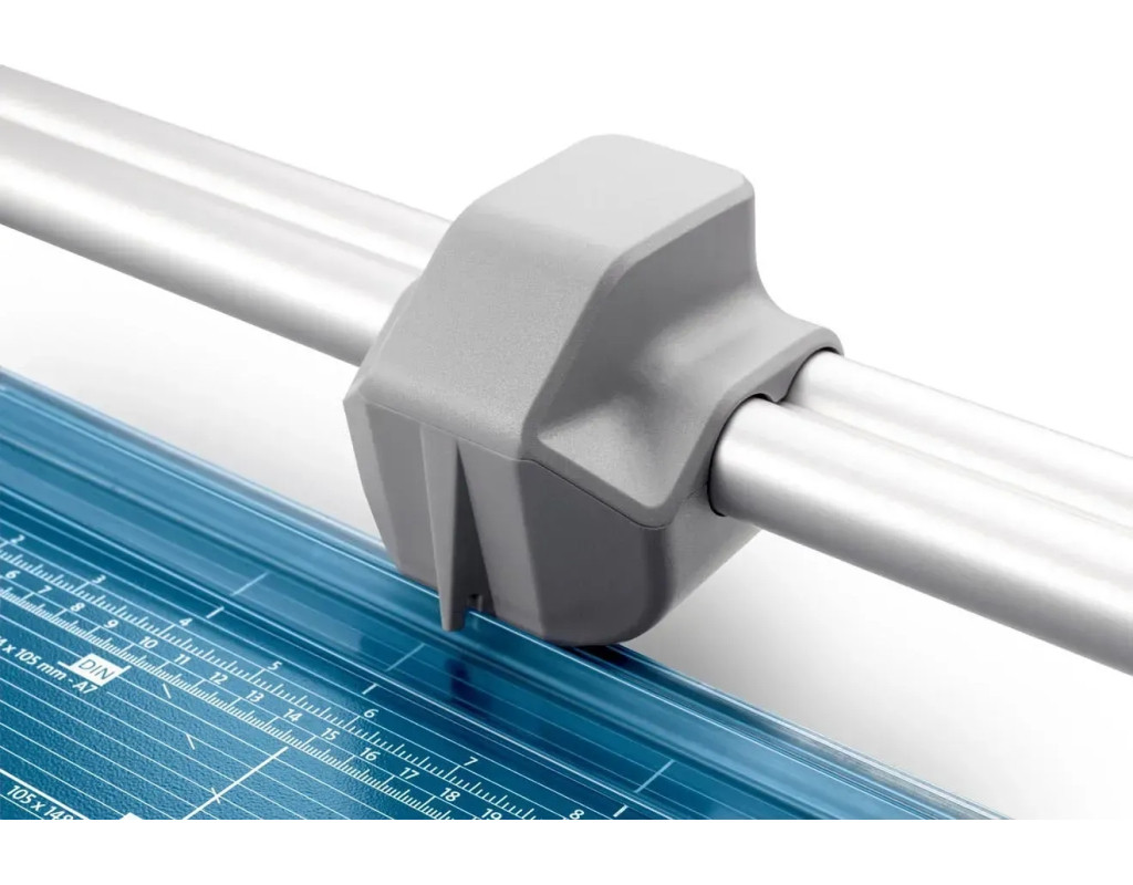 Різак Dahle 556 нового покоління "Generation3" для середніх обсягів робіт по порізці паперу, картону. Довжина різу - 960 мм. Товщина різу - 1,7 мм. На столі нанесена розмітка стандартних форматів паперу с мм-шкалою, включаючи фото розмір. Дві напрямні упору для точності при порізці і зручності різання. Лінійка-позиціонер допоможе точно виставити лінію різу. Ніж та контрніж із загартованої сталі. Дисковий ніж при різанні щільно притискається до контрлеза, забезпечує процес самозаточування. Можливість різу в обох напрямках вздовж направляючої. Пластикова планка щільно притискає папір під час руху ножа, забезпечує автопритиск, точне позиціонування і можливість спостерігати лінію різу в момент розрізання матеріалів. Металева основа. Подвійна напрямна вісь для дискового ножа забезпечує покращений притиск та легке керування. Ніжки-тримачі для компактного вертикального розміщення. Можливість заміни ножа. ТМ Dahle - преміум-клас, різальне обладнання, техніка для офісу та офісні аксесуари. Зроблено в Німеччині! |