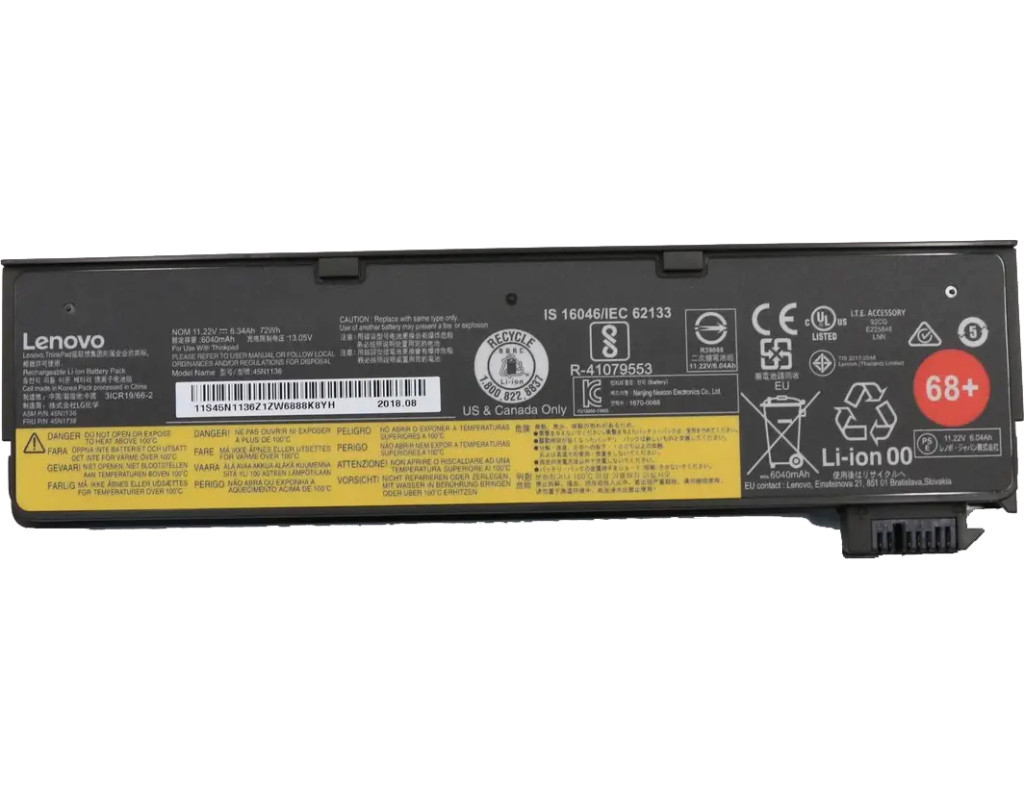 Акумуляторна батарея підходить для наступних моделей ноутбуків: Lenovo ThinkPad A275, Lenovo ThinkPad L450, Lenovo ThinkPad L460, Lenovo ThinkPad L470, Lenovo ThinkPad P50s, Lenovo ThinkPad T440, Lenovo ThinkPad T440s, Lenovo ThinkPad T450, Lenovo ThinkPad T450s, Lenovo ThinkPad T460, Lenovo ThinkPad T460p, Lenovo ThinkPad T470p, Lenovo ThinkPad T550, Lenovo ThinkPad T560, Lenovo ThinkPad W550, Lenovo ThinkPad W550s, Lenovo ThinkPad X240, Lenovo ThinkPad X250, Lenovo ThinkPad X260, Lenovo ThinkPad X270. Дана акумуляторна батарея може мати такі маркування (або PartNumber): 68, 68+, 01AV460, 121500146, 121500147, 121500152, L12L3P53, L12M6Z53, L12S3P53, 45N1124, 45N1125, 45N1126, 45N1127, 45N1128, 45N1129, 45N1131, 45N1132, 45N1133, 45N1134, 45N1135, 45N1137, 45N1734, 45N1735, 45N1736, 45N1737, 45N1738, 45N1767, 45N1775, 45N1777. |