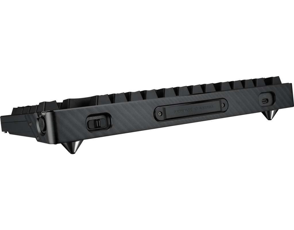 ROG Azoth Extreme – це ігрова клавіатура формфактора 75% з високоякісним корпусом із алюмінієвого сплаву та металевою рамкою. Вона підтримує частоту опитування 8000 Гц завдяки функції ROG Polling Rate Booster і здатна працювати понад 1600 годин у бездротовому режимі ROG SpeedNova, який використовує з’єднання на частоті 2,4 ГГц. Оновлений сенсорний OLED-дисплей і трипозиційний регулятор забезпечують моніторинг системи та швидке налаштування. Позиціонувальна пластина з карбону сприяє чіткому звуку під час натискання клавіш, а три демпферні шари поглинають вібрації. Спеціальний механізм регулювання положення монтажних вставок дає змогу за допомогою перемикача швидко вибрати один із двох режимів амортизації. Висока якість ROG Azoth Extreme може похвалитися естетичним зовнішнім виглядом: корпус клавіатури виготовлений повністю з алюмінієвого сплаву, а металева рамка має характерний рельєфний малюнок. Нижня панель набуває остаточного вигляду в результаті 12 складних виробничих операцій, зокрема піскоструминної обробки, анодування, фрезерування на верстаті з ЧПК та інших. Смужки та елементи дизайну на краях вирізані за допомогою верстата з ЧПК. Нижня панель вирізняється лазерним гравіюванням і полірованою табличкою з логотипом ROG. Три демпфувальних шари В Azoth Extreme використовуються три демпфувальних шари: два шари PORON і силіконова прокладка для поглинання вібрацій і мінімізації стукоту перемикачів та відлуння, що сприяє зниженню шуму. |