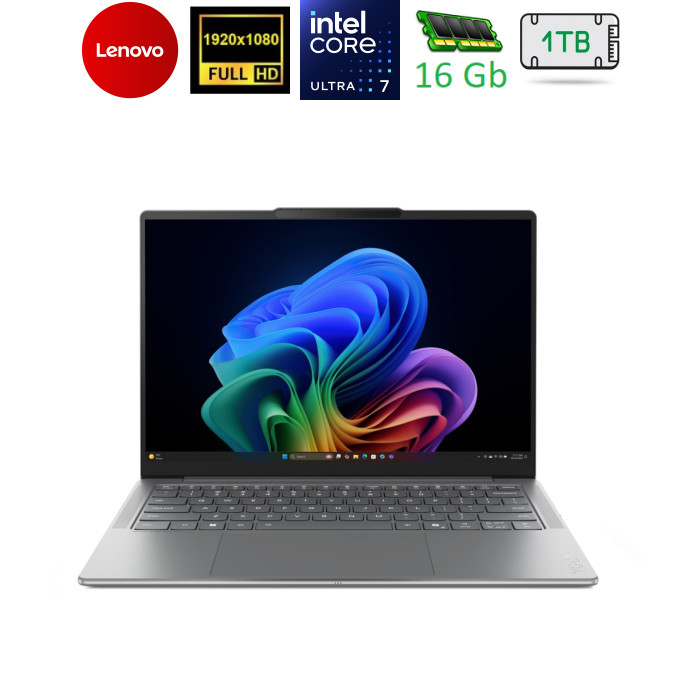 14", 1920x1200 (WUXGA), OLED, 400nits, Intel Core Ultra 7 256V (2.2 - 4.8 ГГц), 16 ГБ, SSD - 1 ТБ, Intel Arc Graphics 140V, Windows 11 Home, 70 Втг, підсвічування клавіатури, TPM модуль, зарядка від USB, українська клавіатура, 1.19 кг, сірий