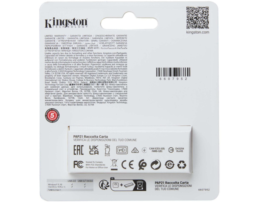 | Kingston DataTraveler Exodia 64GB — це зручний та стильний USB-накопичувач, створений для повсякденного використання. Завдяки інтерфейсу USB 3.2 Gen 1, він забезпечує швидку передачу даних, що дозволяє легко зберігати та переносити документи, фото, відео та інші файли. Компактний пластиковий корпус з кольоровою петлею для кріплення до ключів робить його ідеальним для мобільного використання. Захисний ковпачок оберігає роз'єм від пошкоджень, а п'ятирічна гарантія від Kingston гарантує надійність. |