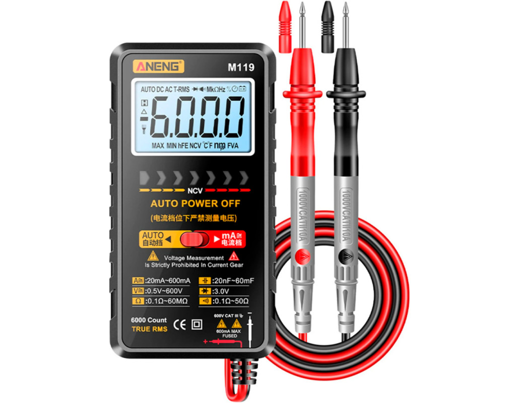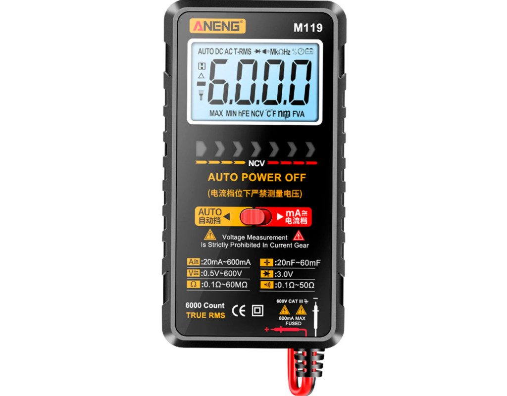 автоматичне вимикання, автоматичний вибір діапазонів вимірювань, безконтактне вимірювання напруги (NCV), вимірювання True RMS, індикація заряду батареї, підсвічування дисплею, функція ліхтарика, функція утримання показань |