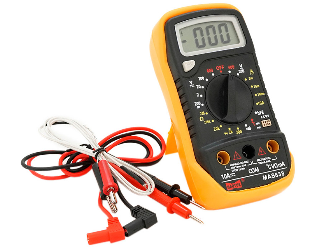 напруга (V), опір (R), прозвонка ланцюга, струм (А), температура (T), тестування діодів, тестування транзисторів |