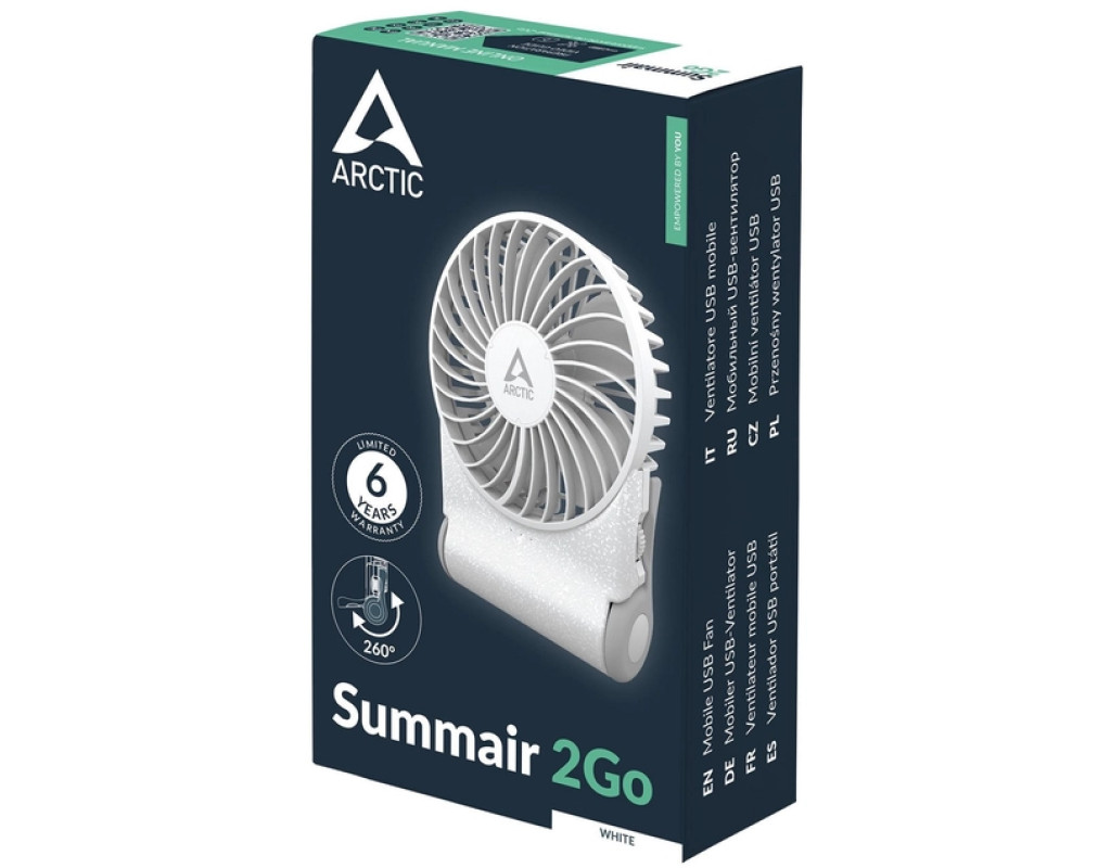 Настільний вентилятор з вбудованим акумулятором ARCTIC USB-C SUMMAIR 2GO Довговічний Змінний акумулятор ємністю 5000 мАг забезпечує час роботи до 77 годин. Практичний Завдяки зручному дизайну та компактним розмірам, Summair 2Go є ідеальним компаньйоном для подорожей - завжди готовий до використання та легкий у транспортуванні. Потужний Summair 2Go створює тихий вітерець на низькій швидкості та потужний потік повітря на максимальній потужності. Продуманий дизайн Summair 2Go поєднує в собі вентилятор ARCTIC з оптимізованим повітряним потоком і акумулятор з тривалим терміном служби, що забезпечує надійне охолодження навіть у дорозі. Перевірений досвід Розроблений на основі більш ніж 20-річного досвіду в галузі вентиляторів, він пропонує очікувану якість і надійність ARCTIC - так само, як і наші високоякісні вентилятори для ПК та серверів. Надійна підставка Вентилятор Summair 2Go має прогумовану складну ніжку, яка забезпечує стабільну опору навіть на делікатних поверхнях, не залишаючи подряпин. Зручне використання Summair 2Go має ергономічну форму, а його поверхня має непомітну текстуру, що забезпечує надійне і постійне захоплення навіть під час руху. |