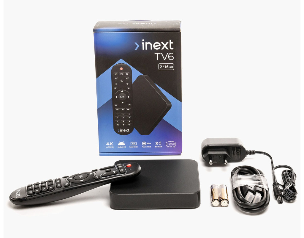 | iNeXT TV6 працює на операційній системі Android 12, має сучасний надшвидкий Wi-Fi модуль, оснащений потужною зовнішньою антеною, та вбудований Bluetooth.