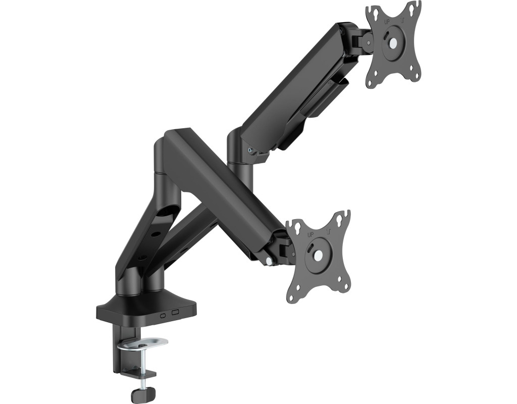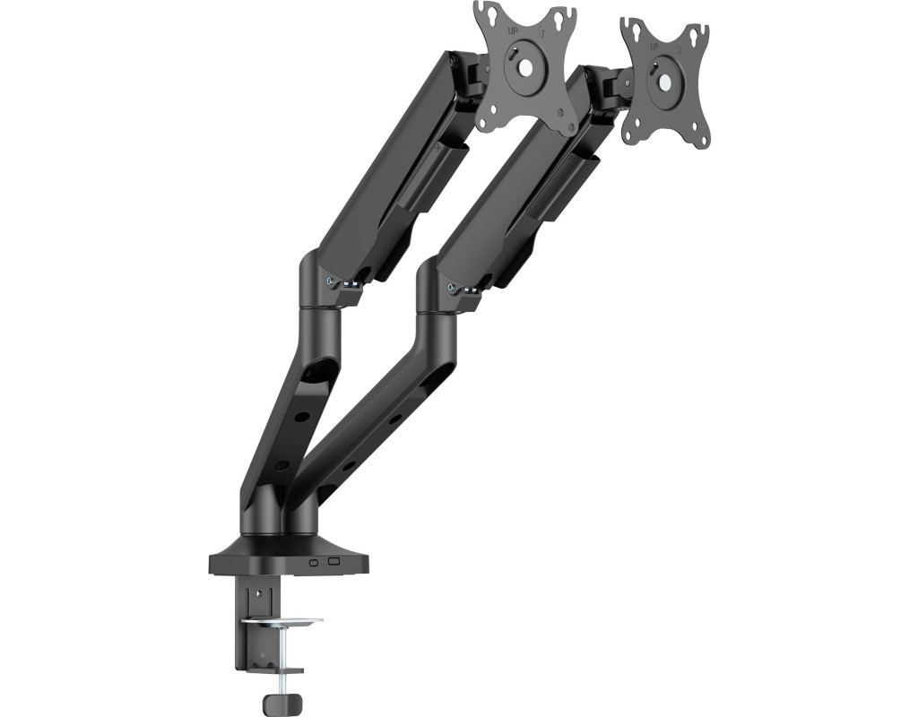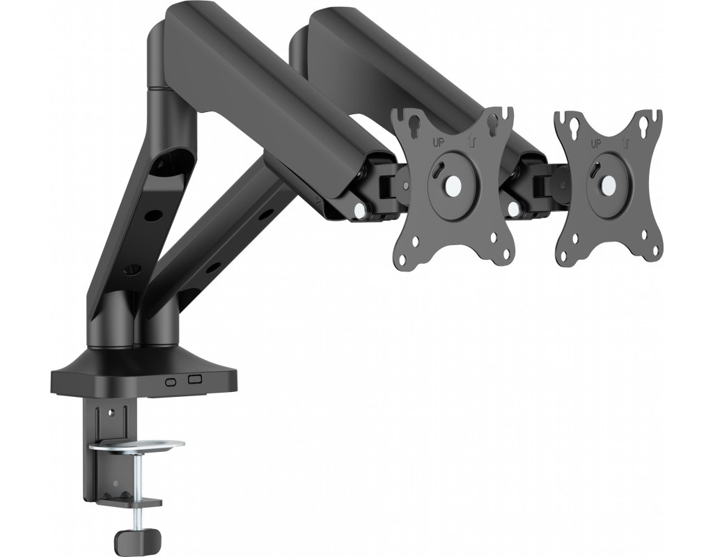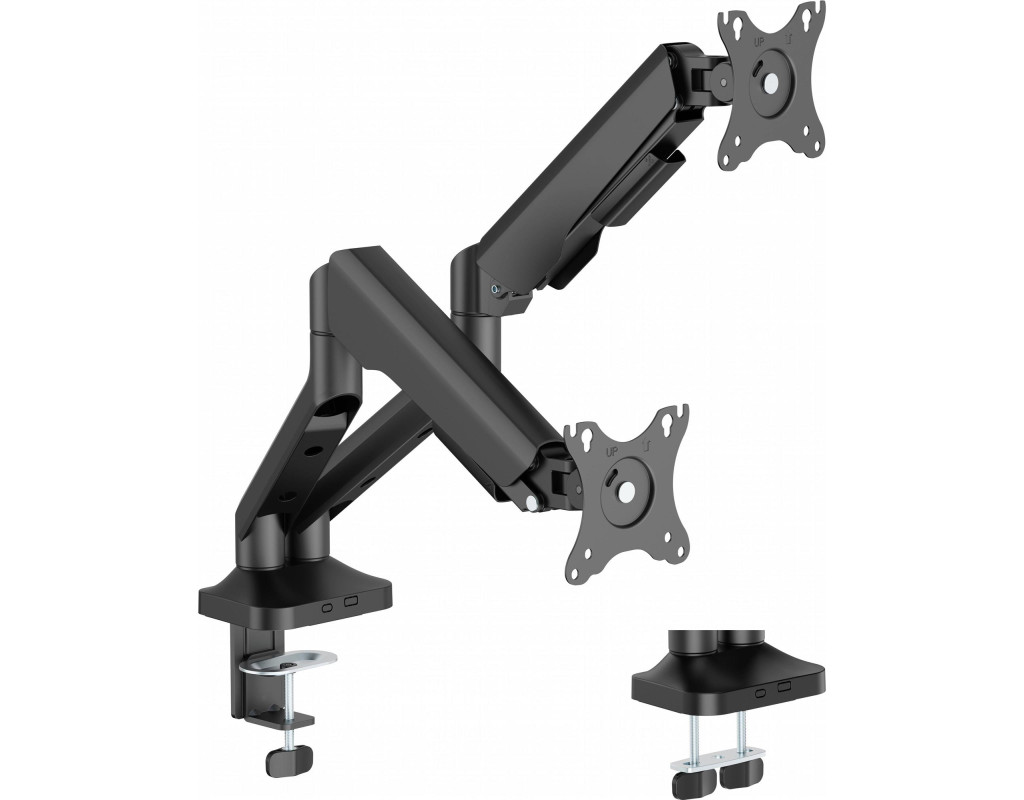 Підтримуються стандарти VESA 75x75 та 100x100 мм, що гарантує сумісність з більшістю сучасних моніторів. Монтаж можливий за допомогою струбцини або наскрізного отвору на стільниці завтовшки від 10 до 80 мм. Інтегрована система організації кабелів дозволяє зберігати порядок на столі, що особливо важливо при використанні двох екранів. Це ідеальне рішення для дизайнерів, трейдерів, геймерів та всіх, хто працює з великим обсягом інформації. |