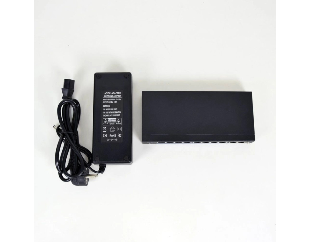 | 10-портовий некерований PoE комутатор PoE-1010-8P/250m/8L з 8 портами РоЕ, які можуть автоматично визначати та подавати живлення пристроям, що підтримують стандарт живлення PoE (WI-FI точка доступу, IP-телефон, IP-камера та ін.). Для передачі сигналу використовуються всі 8 жил кабелю.