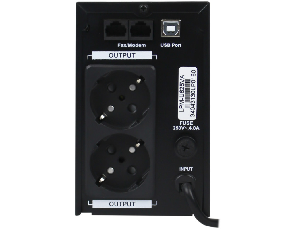 | LPM-U625VA - лінійно інтерактивний ДБЖ, по суті, є резервним джерелом живлення. Цей пристрій головним чином призначається для безперебійного живлення різних технічних пристроїв і електроніки, і необхідно при аварійному або раптовому відключенні основного мережевого електроживлення.