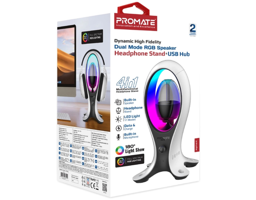 Додай ще більше функціональності та стилю у свій ігровий простір. Promate Alpha-X — колонка, хаб, мікрофон, та підставка для навушників в одному пристрої, стане яскравим акцентом на столі. Особливості: - 4-в-1: Колонка, хаб, підставка для навушників та вбудований мікрофон - Alpha-X виведе ергономіку геймерської зони на абсолютно новий рівень.